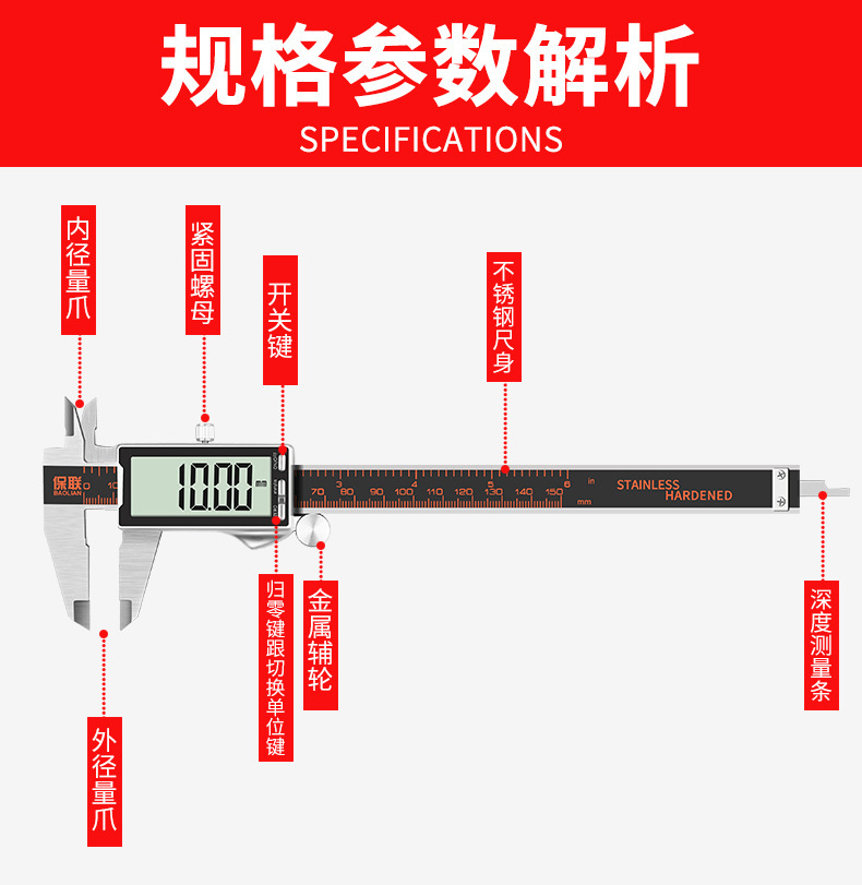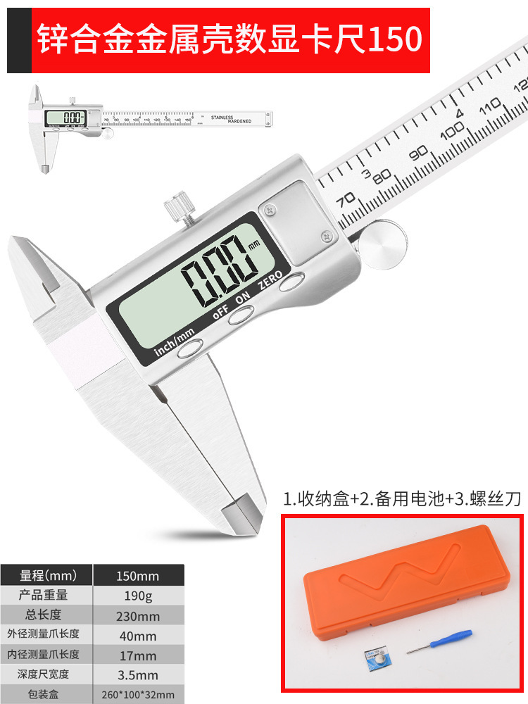 • 아연 합금 금속 쉘 디지털 캘리퍼스(150mm)