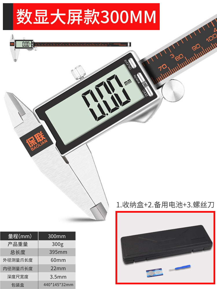 스테인레스 스틸 전자 버니어 캘리퍼 고정밀 디지털 디스플레이 산업 등급 가정용 작은 놀이 깊이 오일 표준 300mm