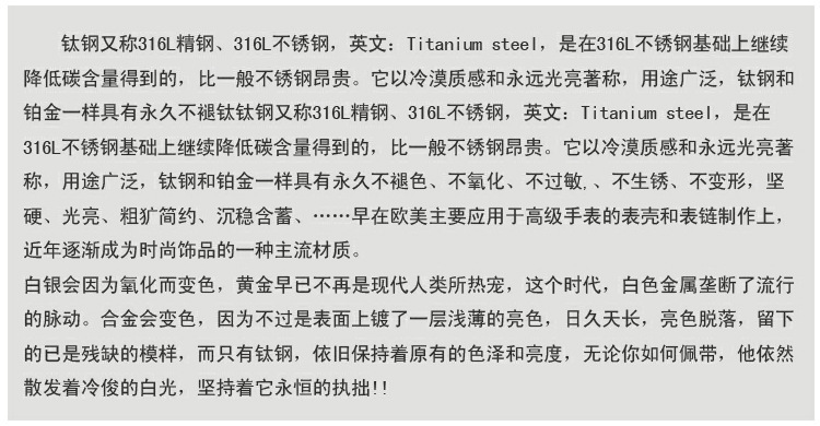 产品工艺:镜面抛光工艺,文字为激光刻字工艺