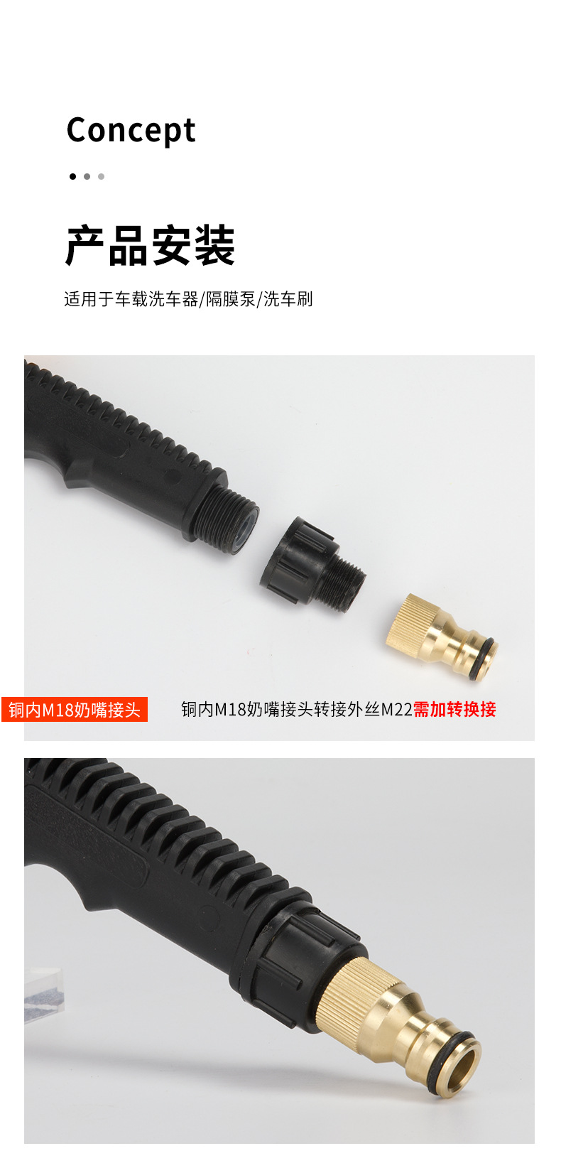 M18 * 1.5 자동차 세탁기 니플 커넥터 액세서리 고압 자동차 세탁기 다이어프램 펌프 휴대용 물 총 세차 브러시