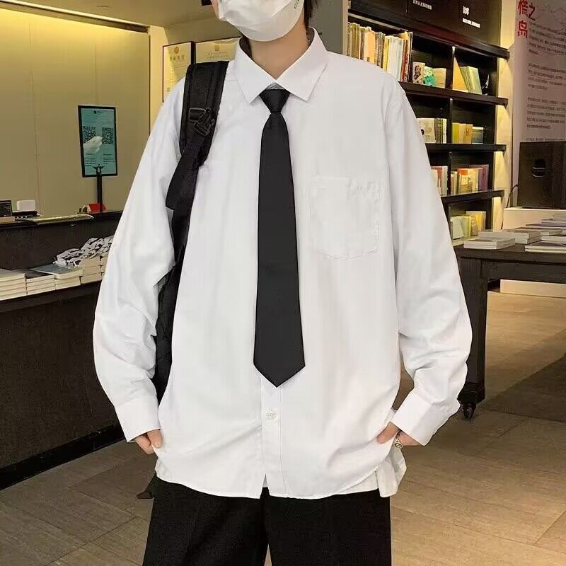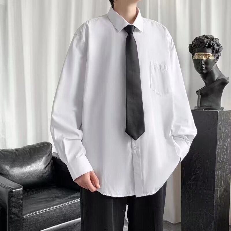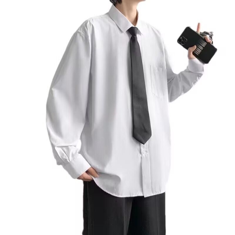 흰색 셔츠 남성용 긴팔 유행 느슨한 셔츠 Dk 유니폼 커플 세트 대학 스타일 졸업 사진 클래스 옷스토어 가기