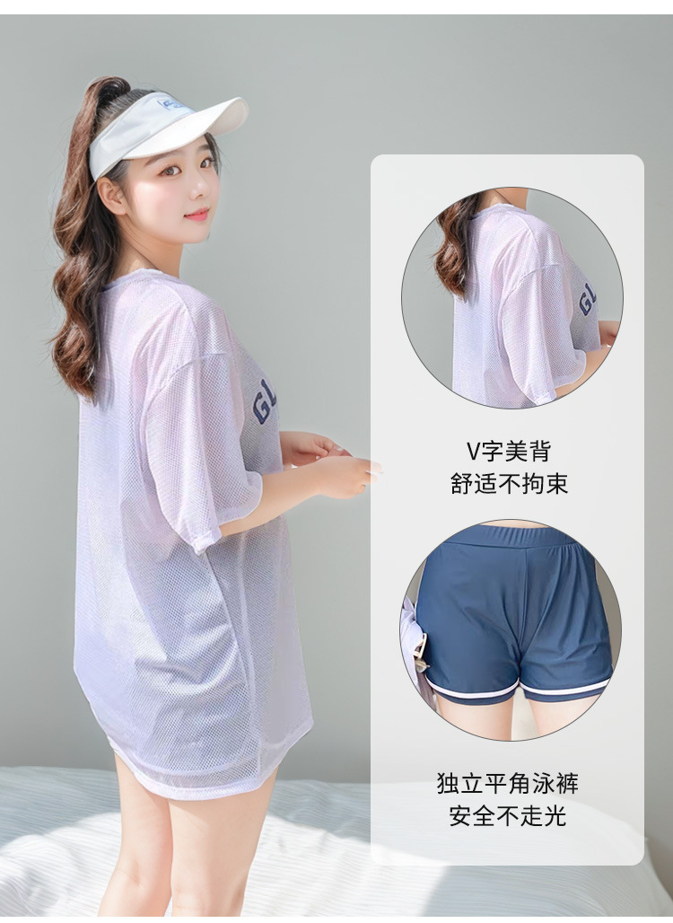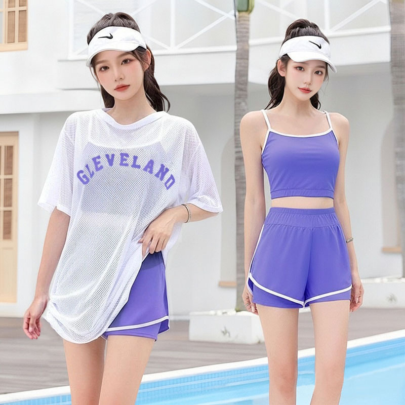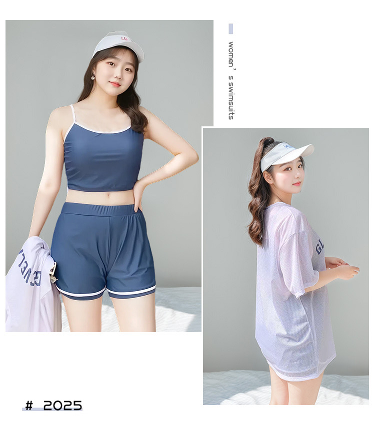 수영복 여성용 플러스 사이즈 루즈 스플릿 3 피스 세트 약간 통통한 스타일 슬림 룩 고기 커버 블라우스 선 스크린 휴가 하이 엔드 수영복스토어 가기