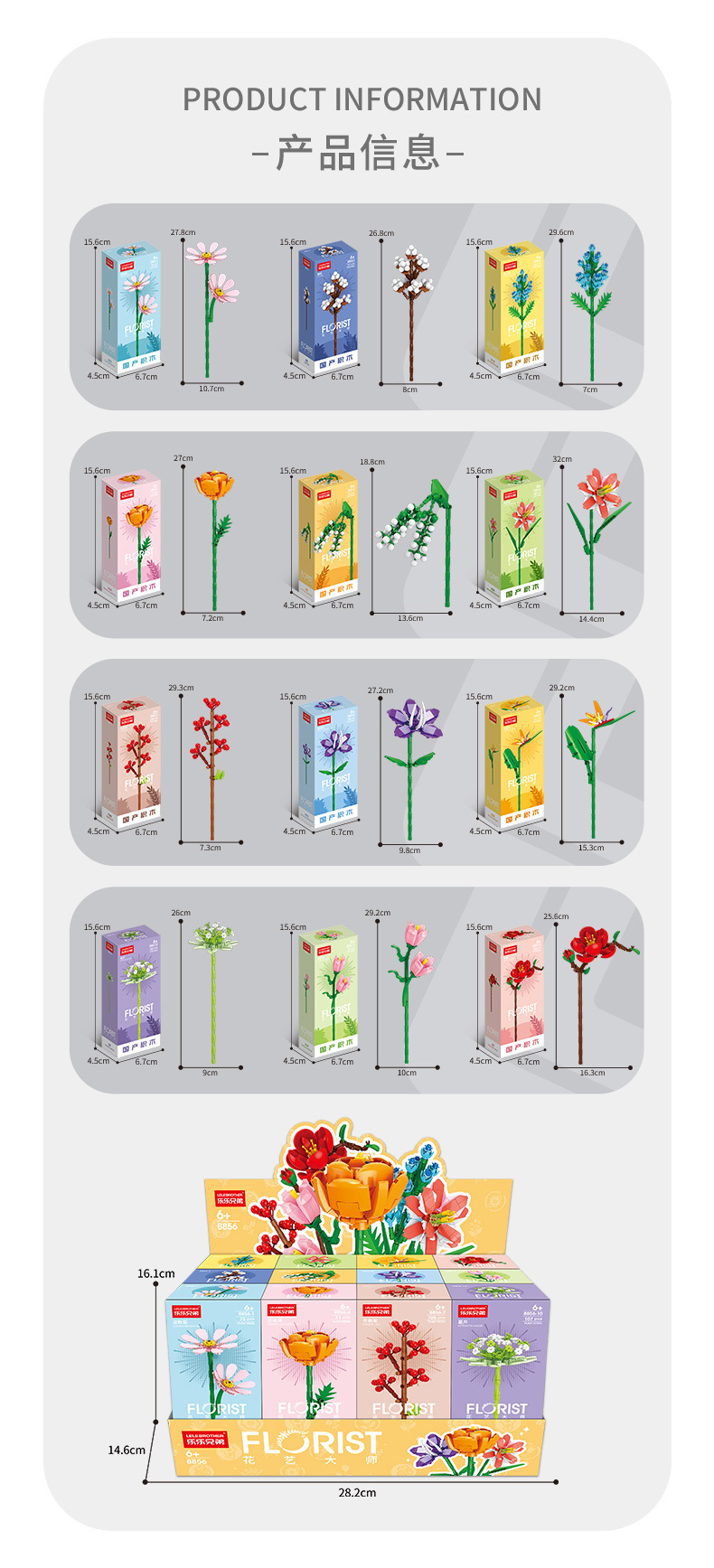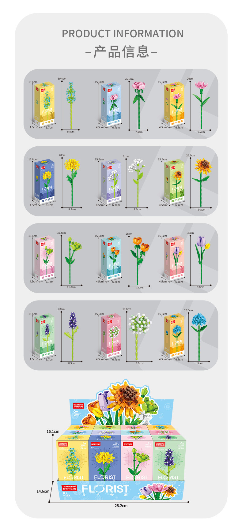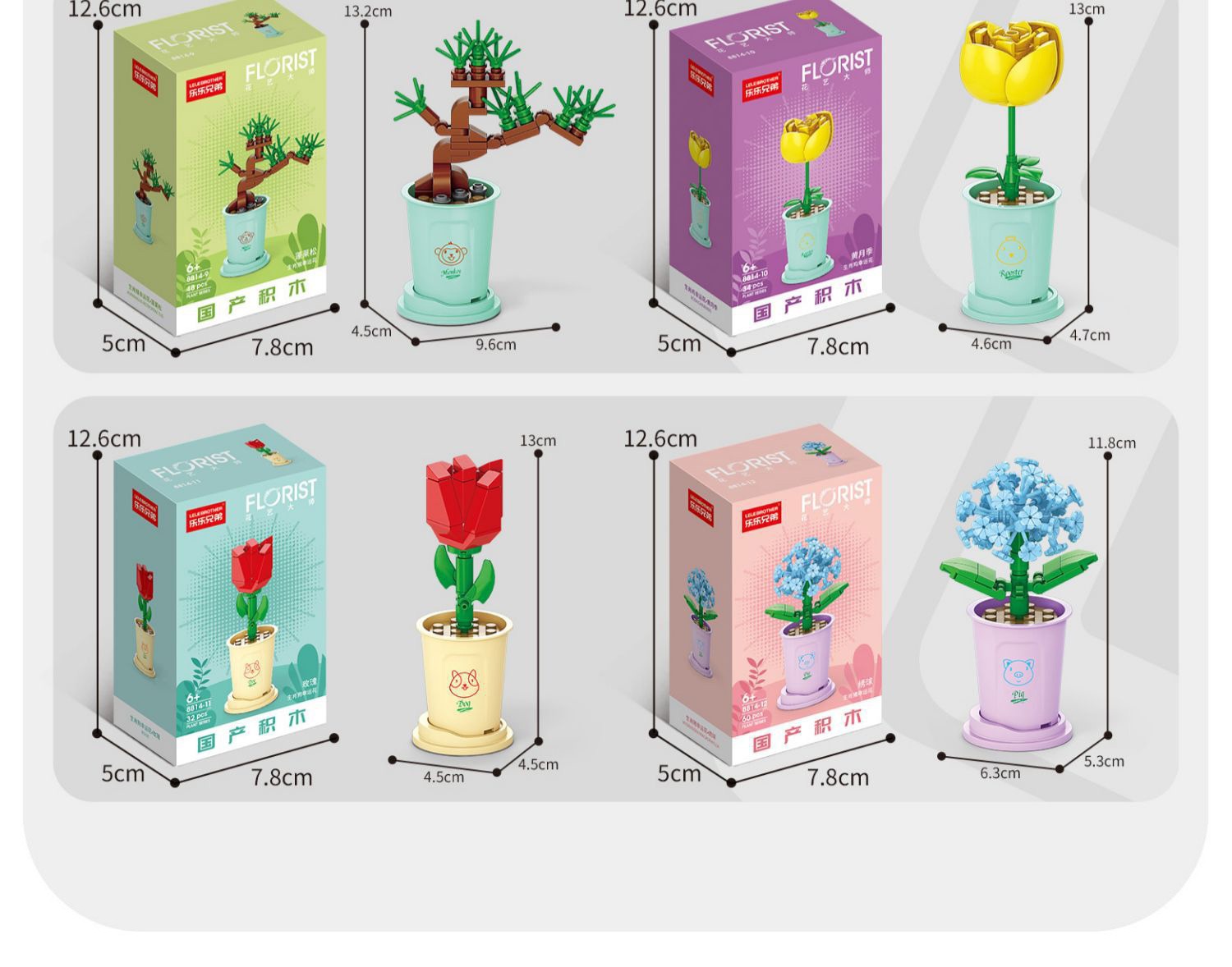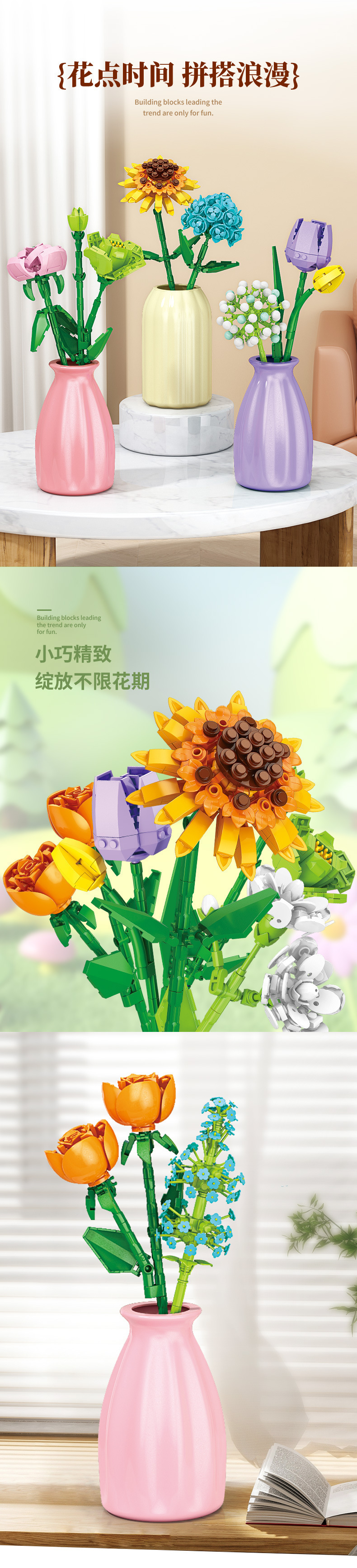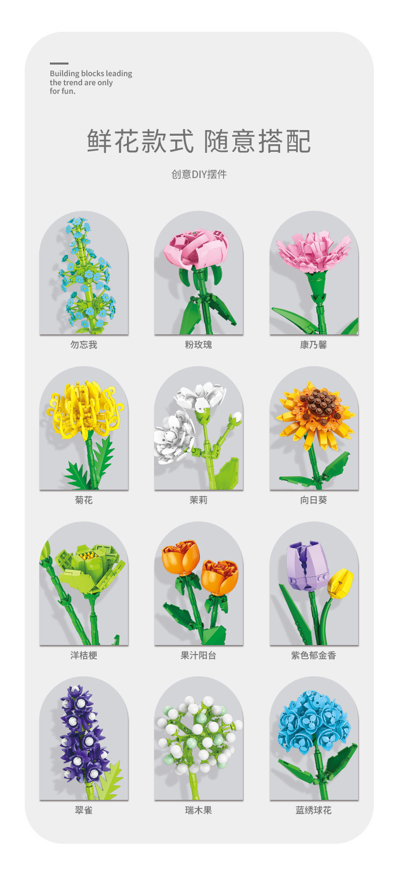 • 12-Lele 9095 의 빌딩 블록 꽃 세트