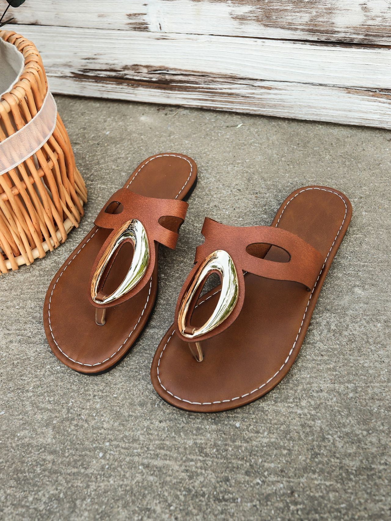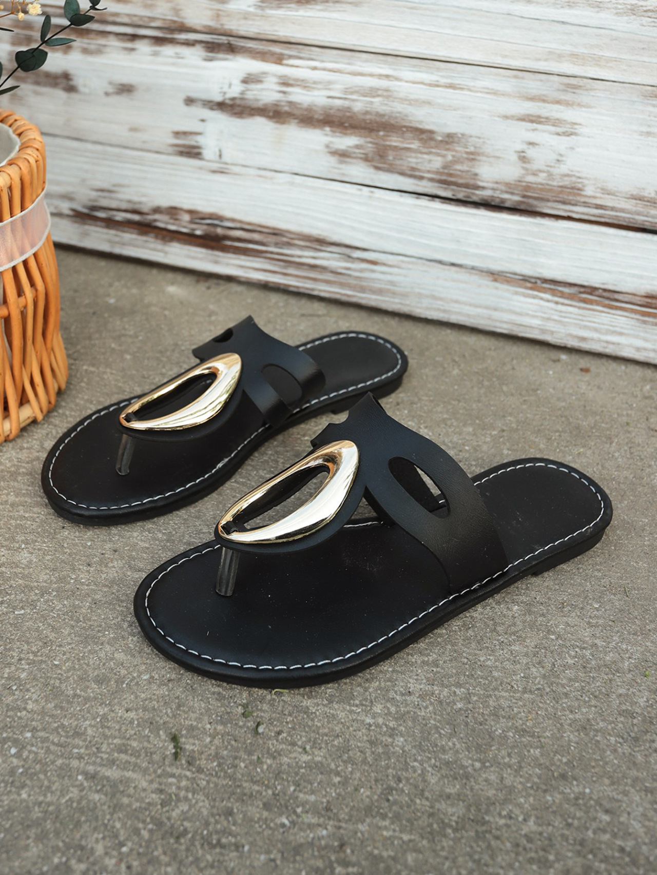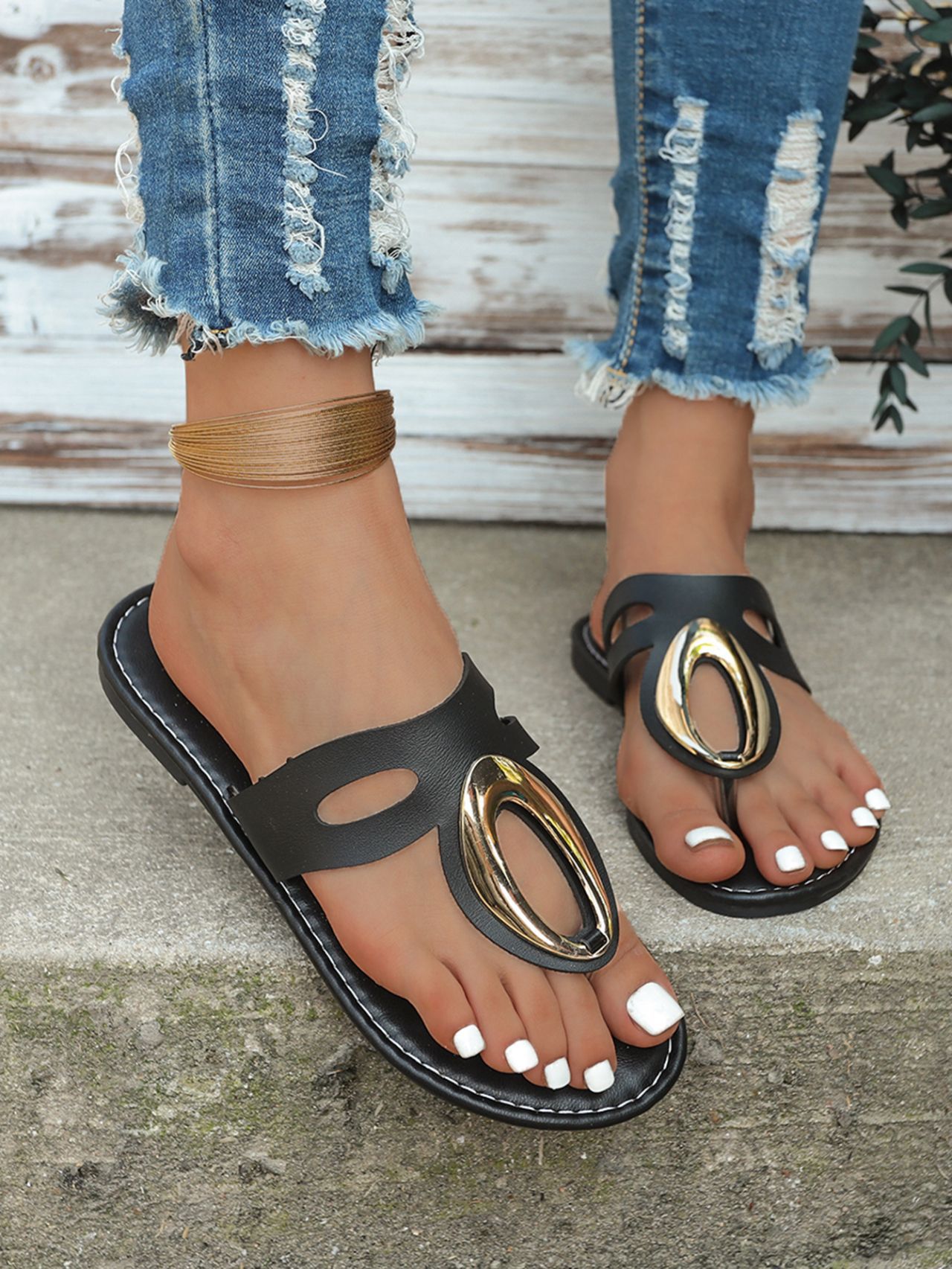 국경 간 대외 무역 플러스 사이즈 2024 여름 새로운 패션 캐주얼 PU 금속 플립 토 여성용 플랫 슬리퍼