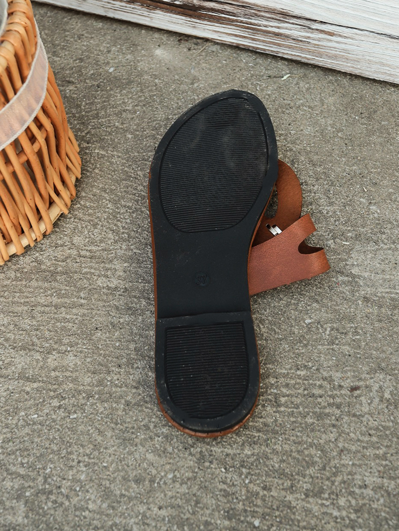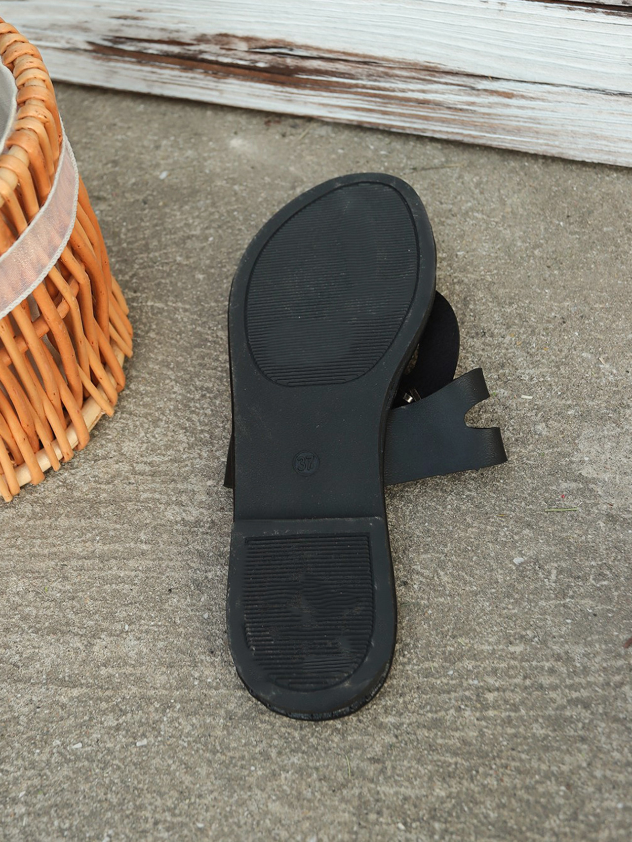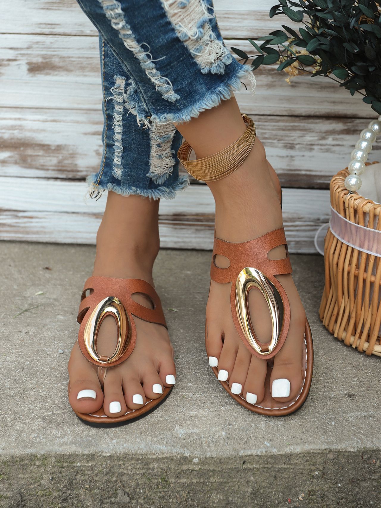국경 간 대외 무역 플러스 사이즈 2024 여름 새로운 패션 캐주얼 PU 금속 플립 토 여성용 플랫 슬리퍼