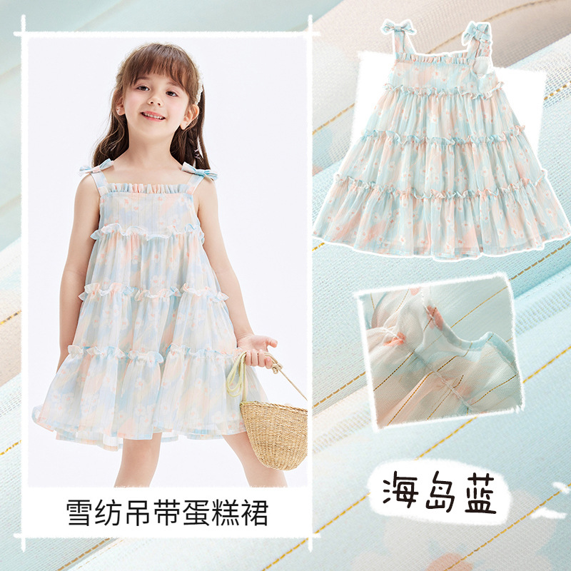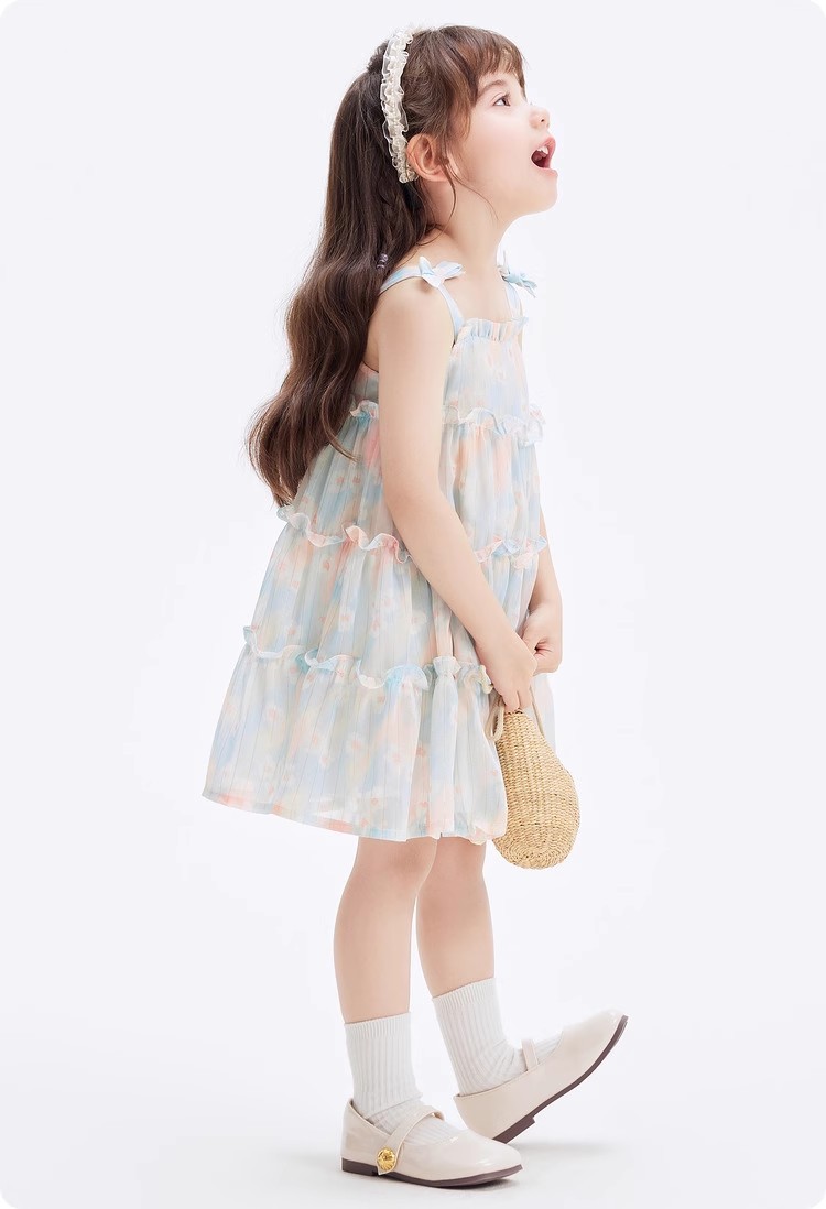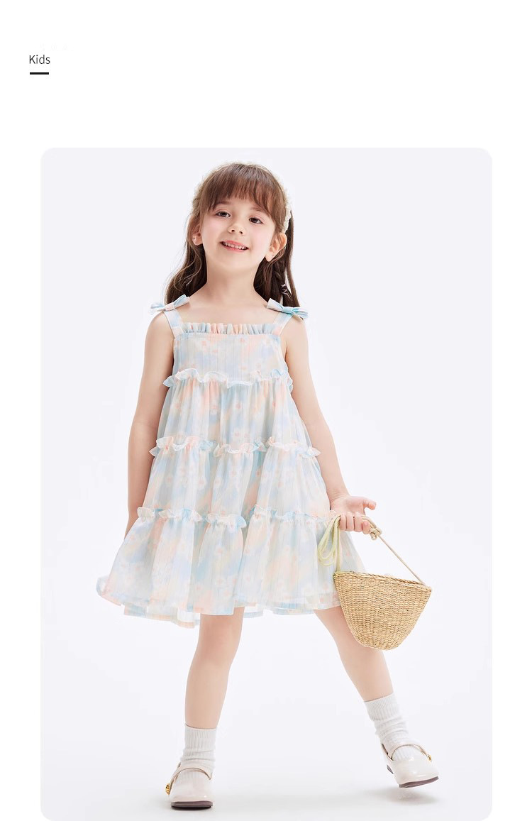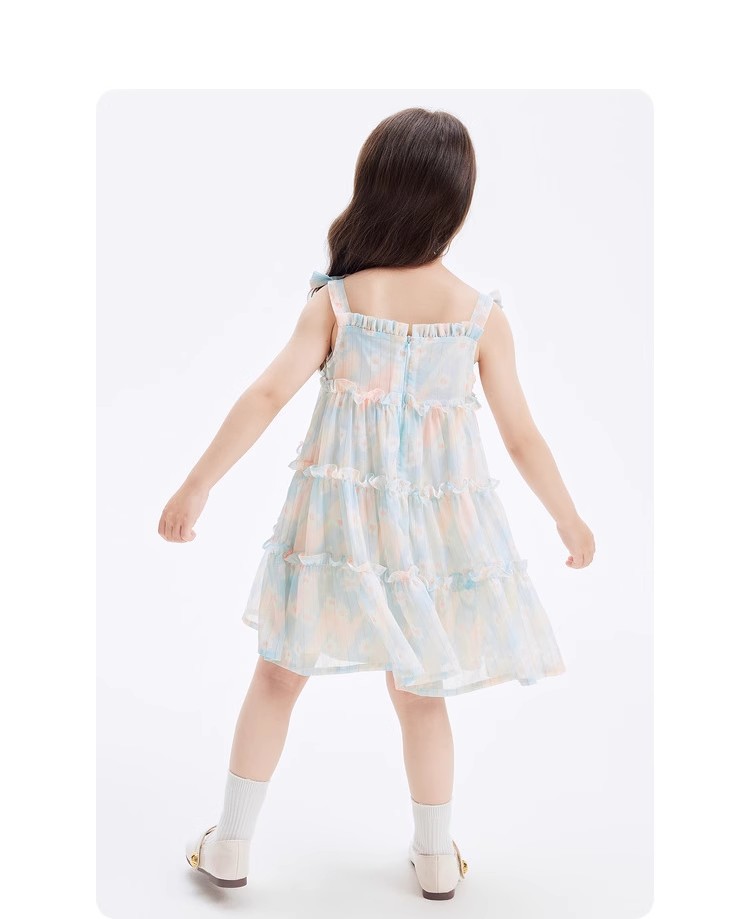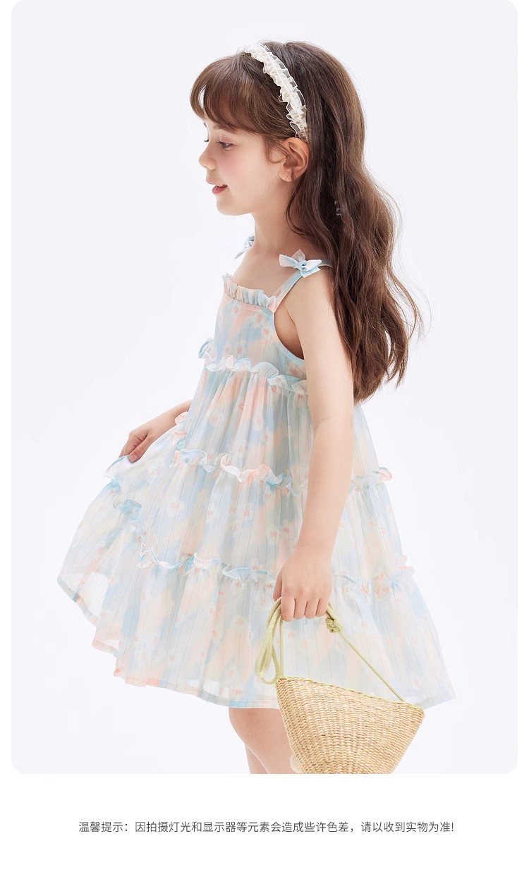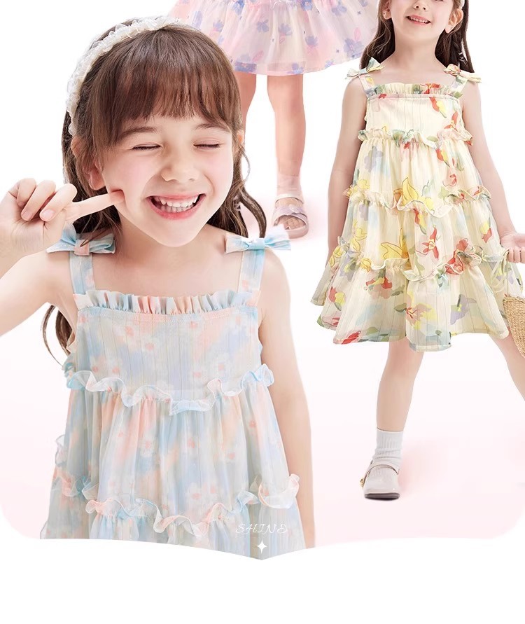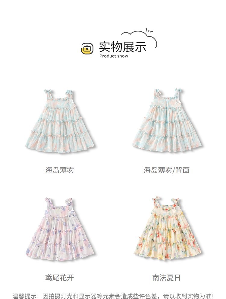 도매 아동복 2025 여아 여름 원피스 아기 패셔너블한 끈이 달린 쉬폰 공주 케이크 스커트 외출용스토어 가기