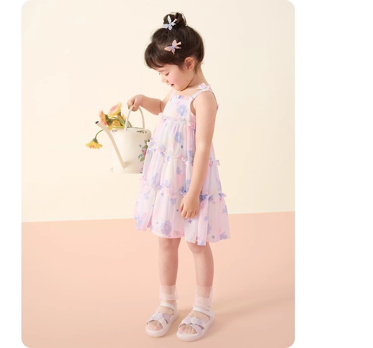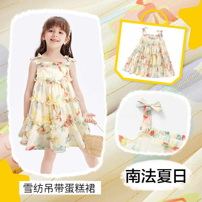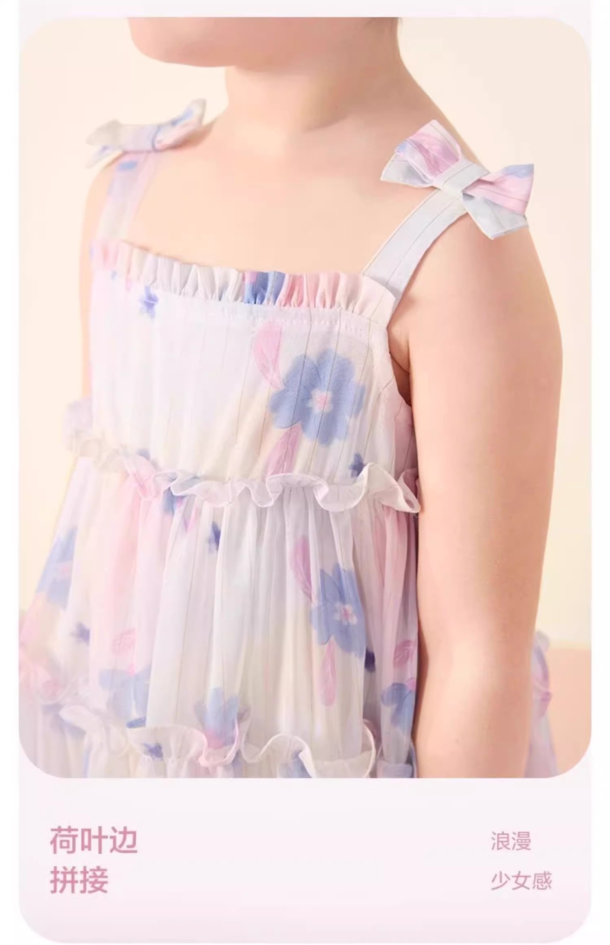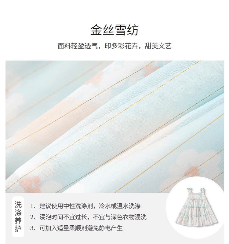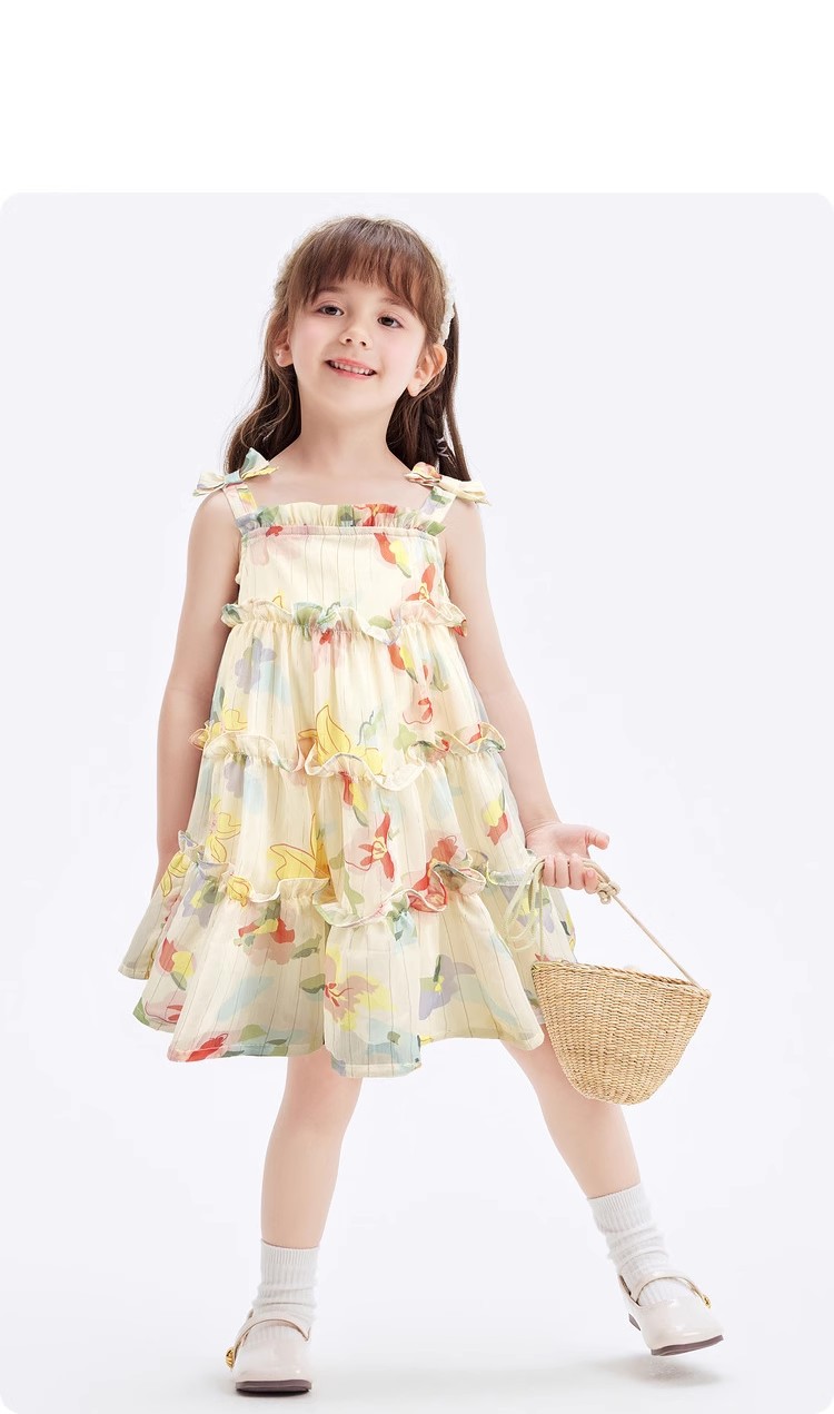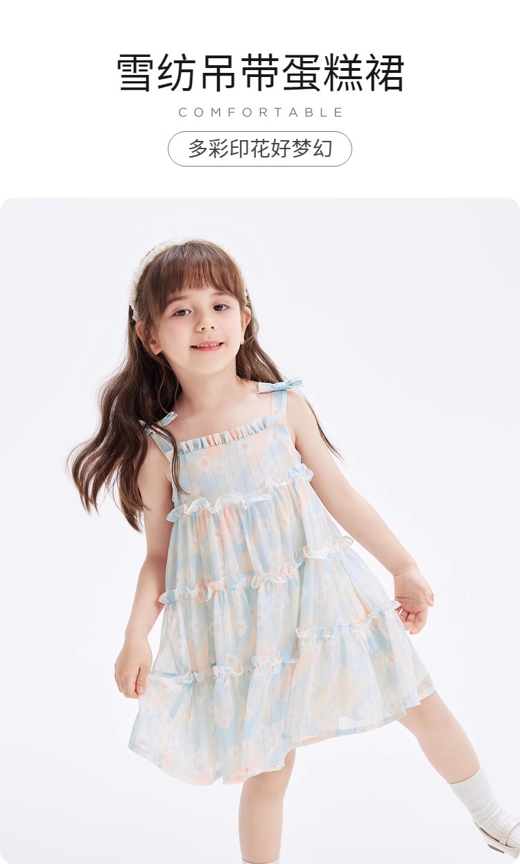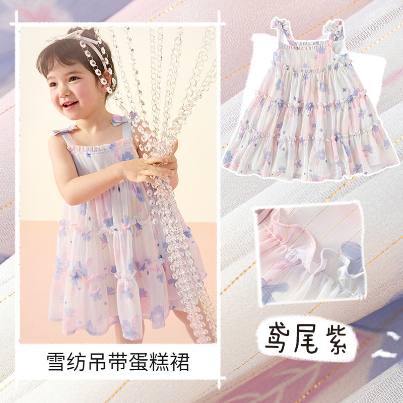 도매 아동복 2025 여아 여름 원피스 아기 패셔너블한 끈이 달린 쉬폰 공주 케이크 스커트 외출용스토어 가기