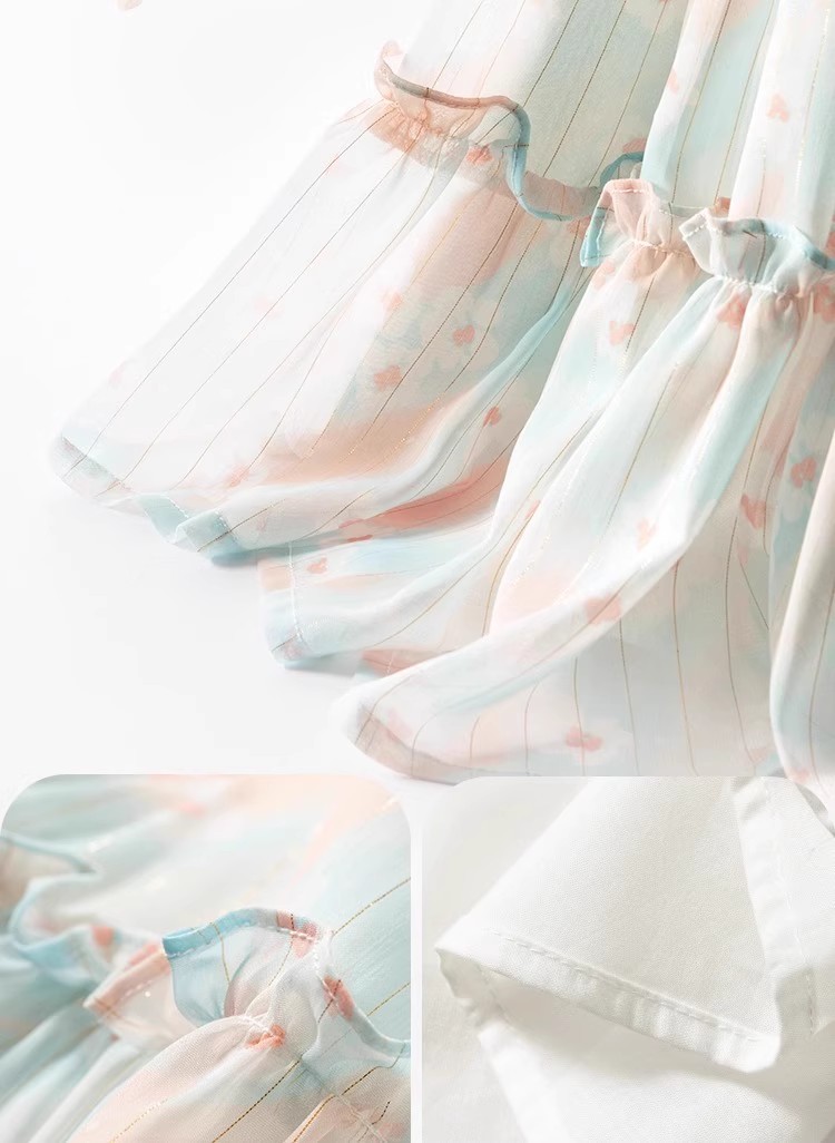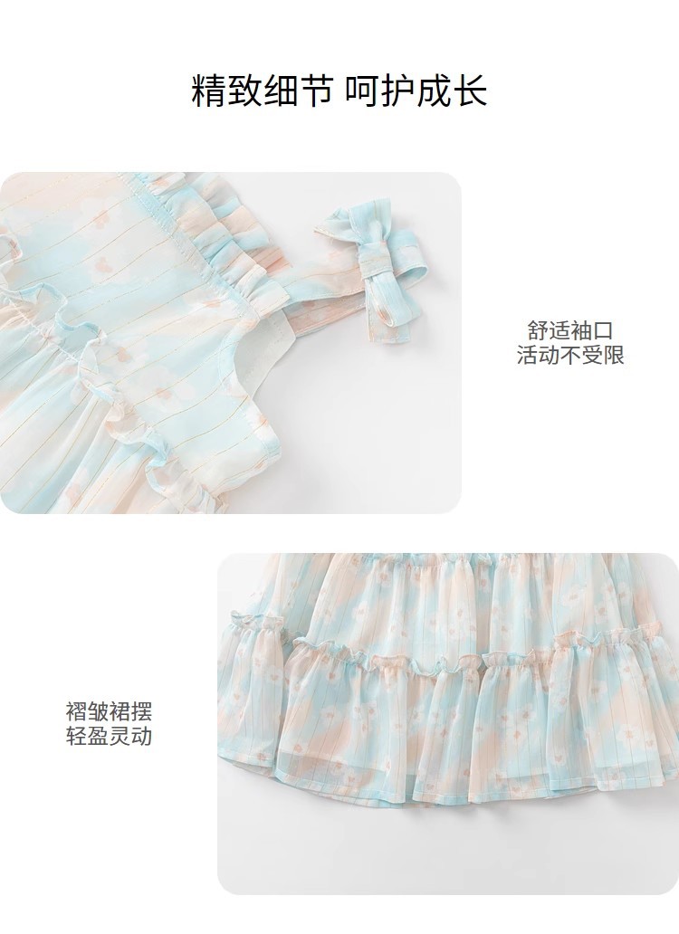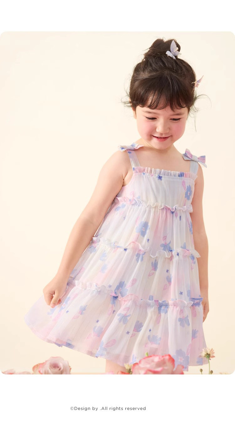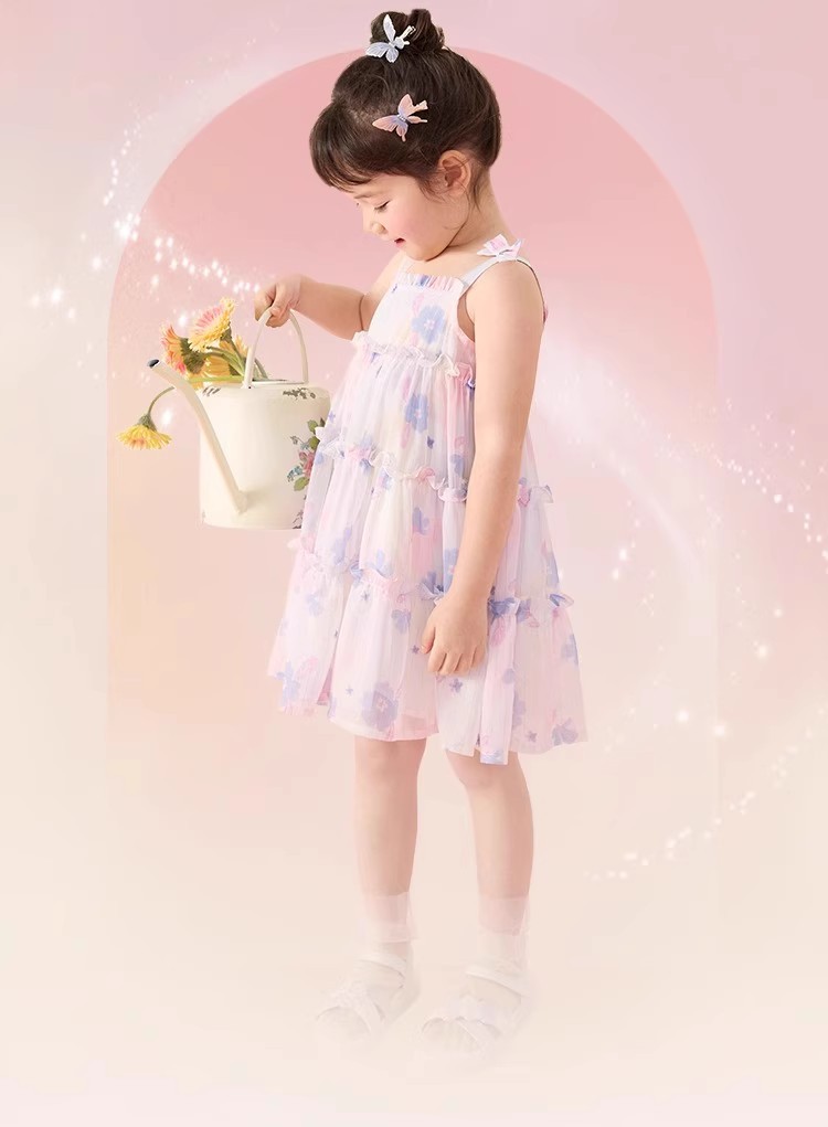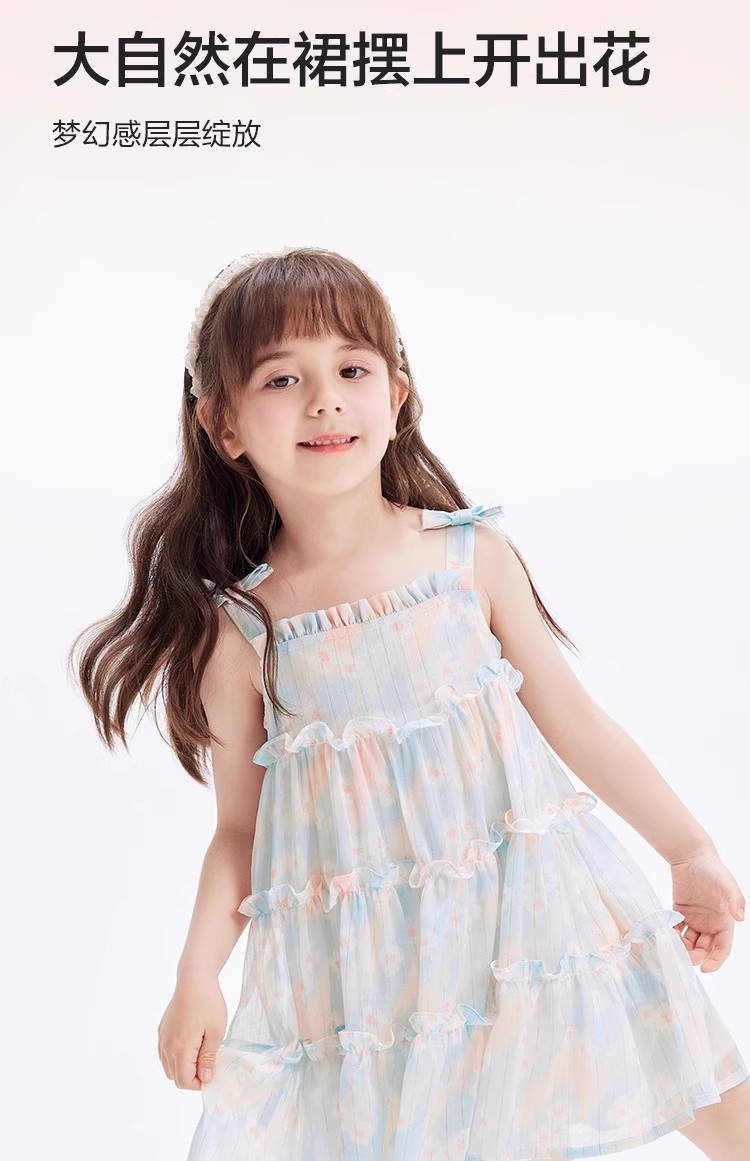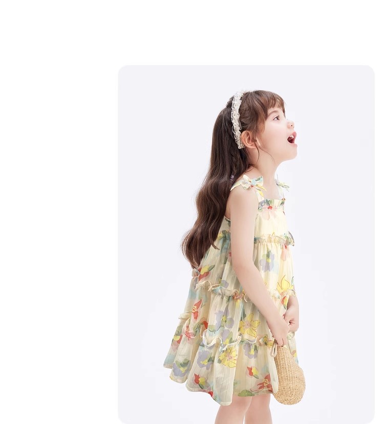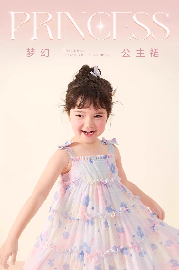 도매 아동복 2025 여아 여름 원피스 아기 패셔너블한 끈이 달린 쉬폰 공주 케이크 스커트 외출용스토어 가기
