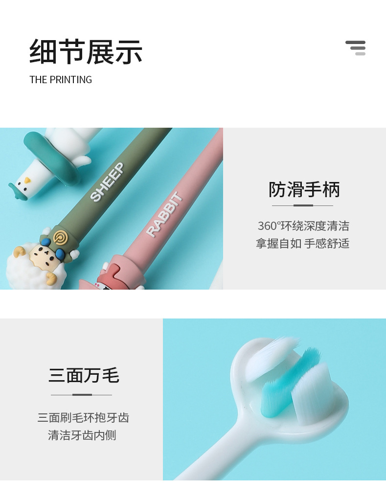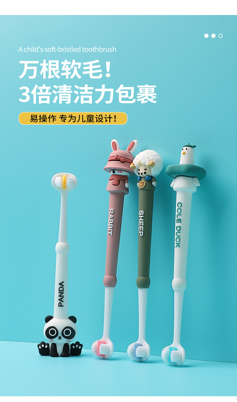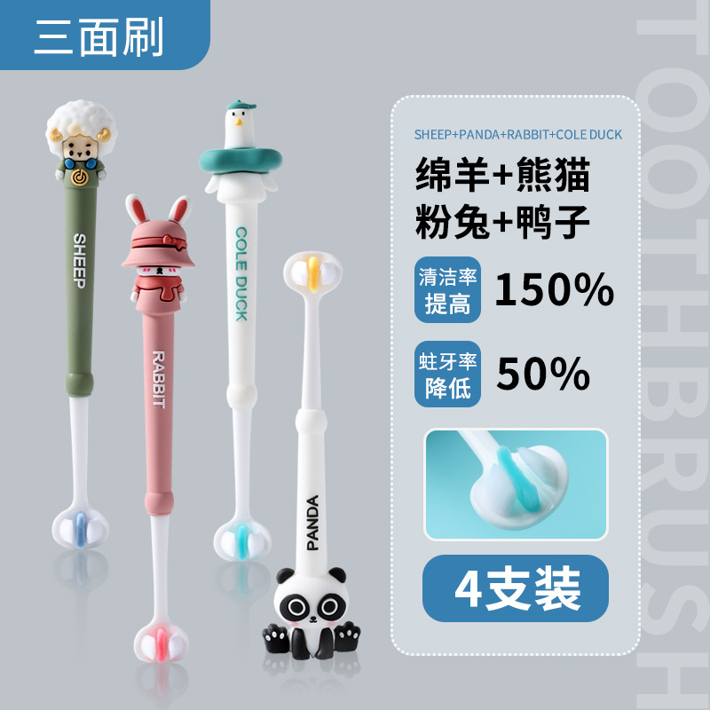 어린이 칫솔 귀여운 재미 부드러운 머리 변화 기간 소년과 소녀 아기 3 면 브러시 어린이 유아 3 세 이상
