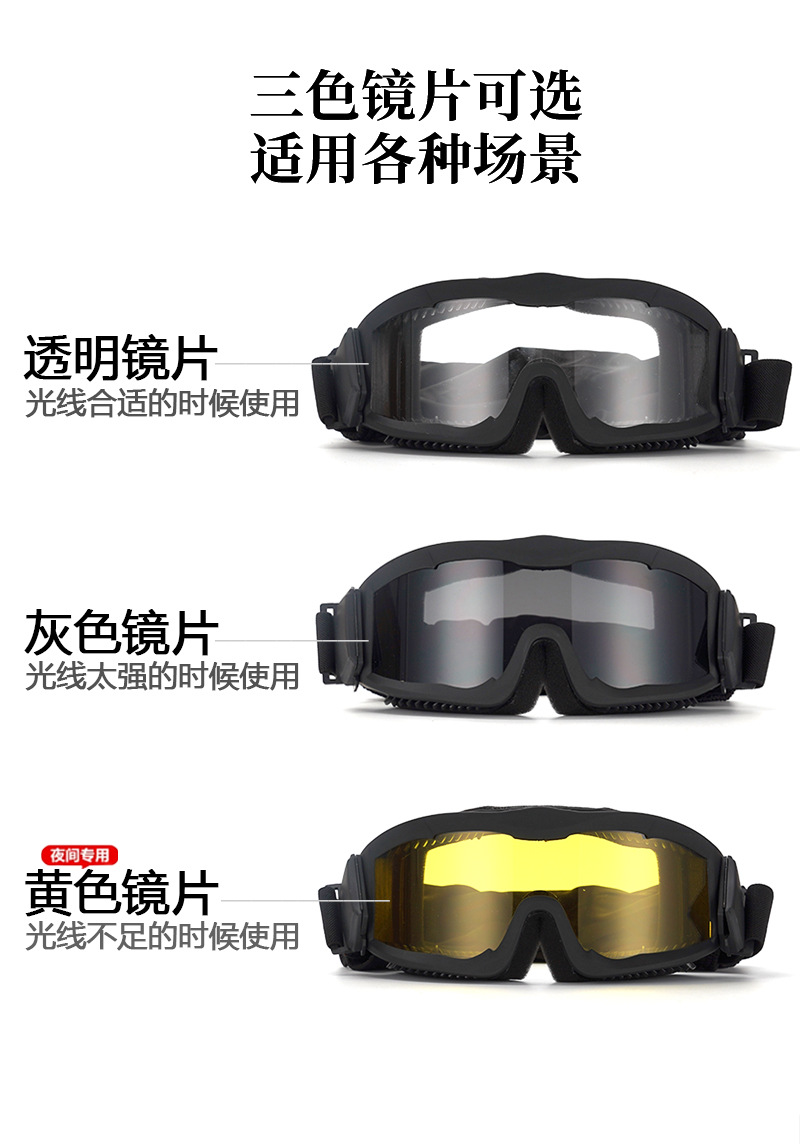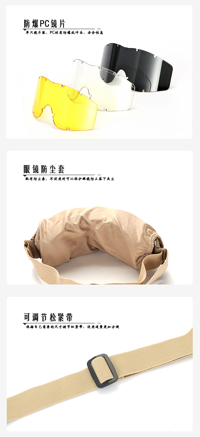 재고 있음 도매 알파 전술 고글 3 렌즈 슈팅 안경 야외 군사 팬 CS 장비 방폭 및 충격 방지