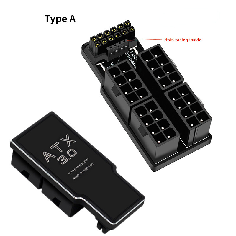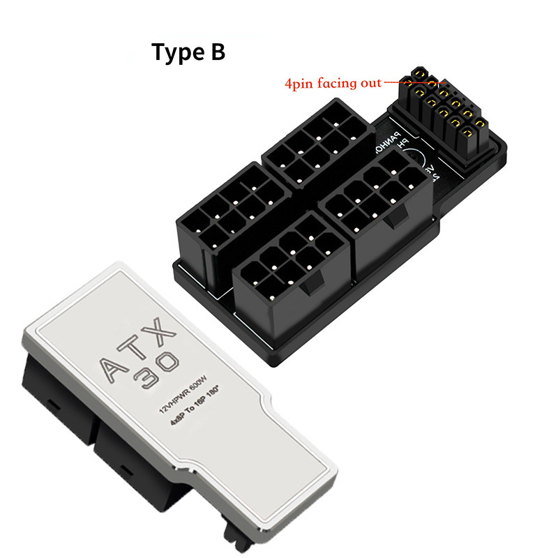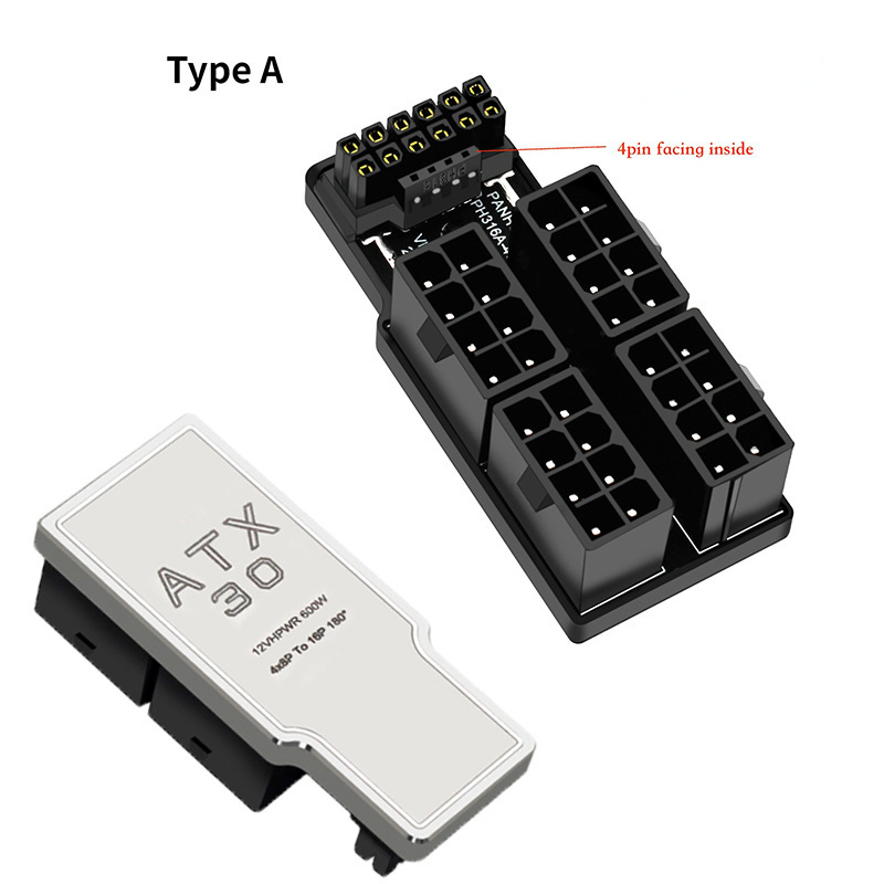 ATX3.0 12VHPWR 600W 그래픽 카드 전원 공급 장치 12 4 16Pin to 4x8Pin 여성 180 도 조향
