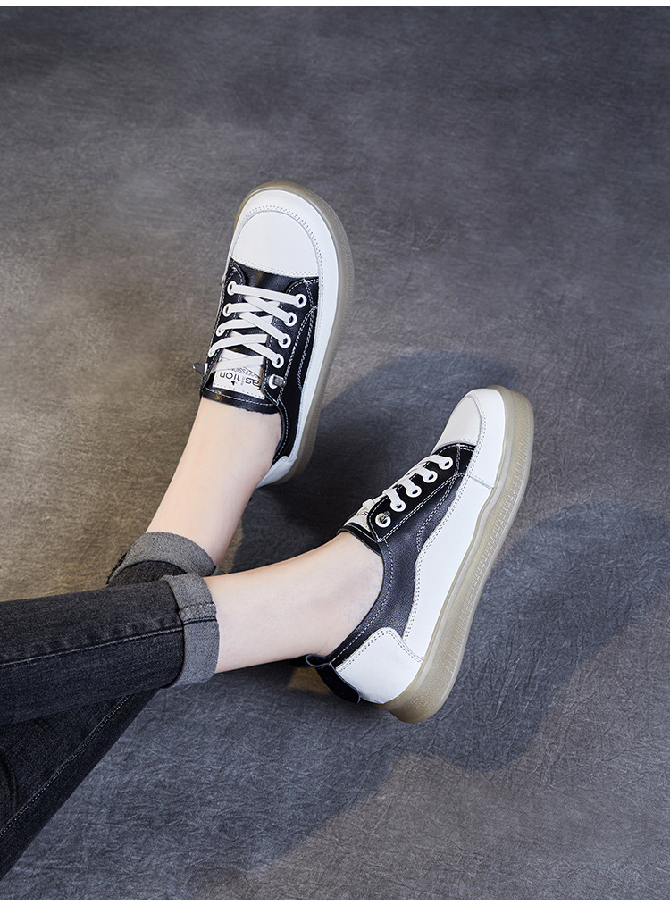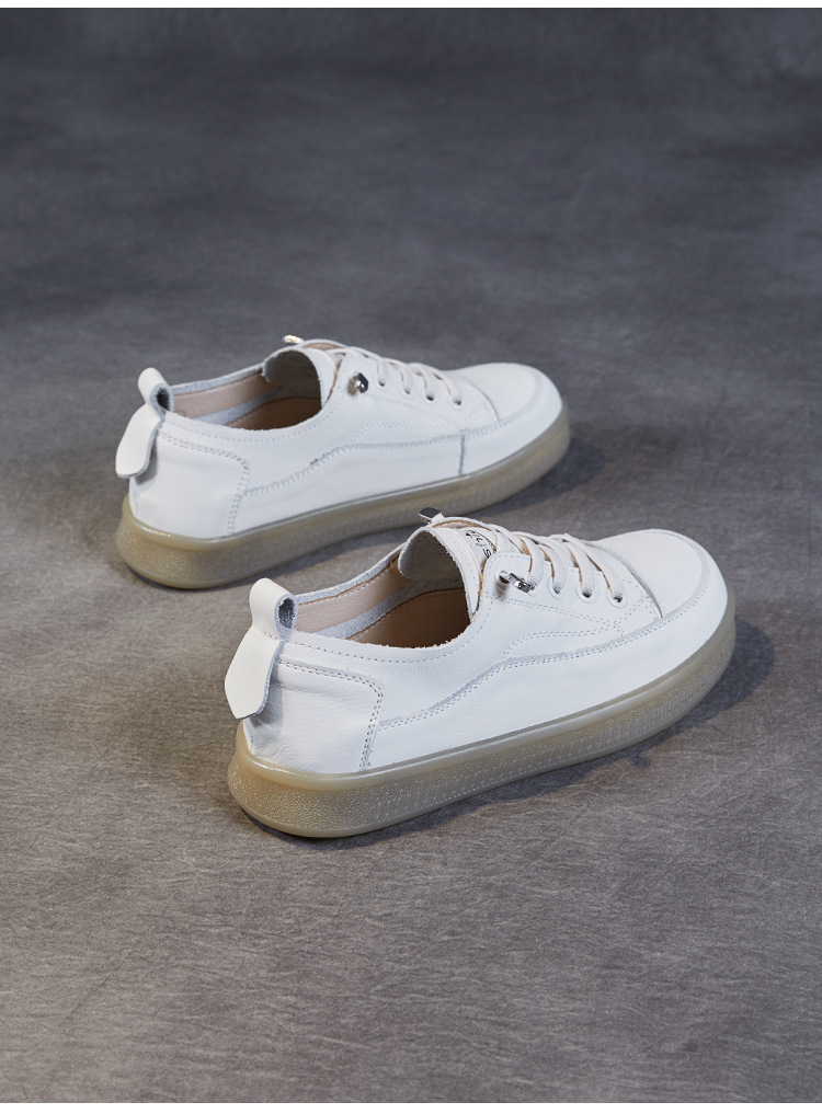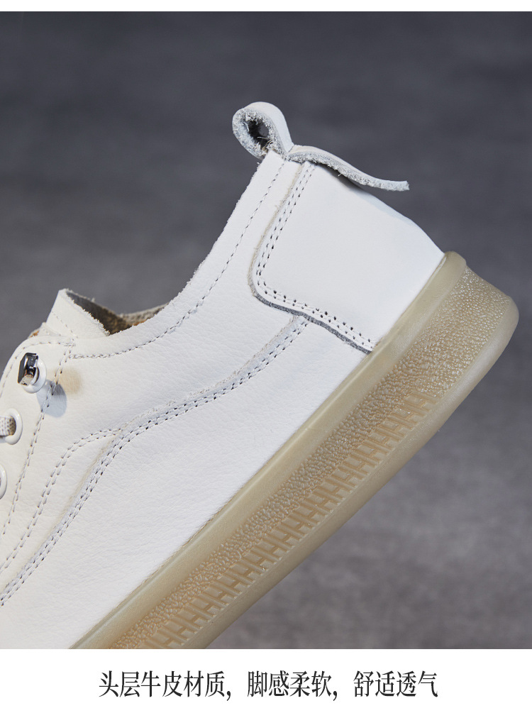 쇠고기 단독 흰색 신발 여성 올 매치 봄 새로운 정품 가죽 여성 신발 폭발성 캐주얼 신발 슬립 온 소프트 솔 작은 가죽 신발