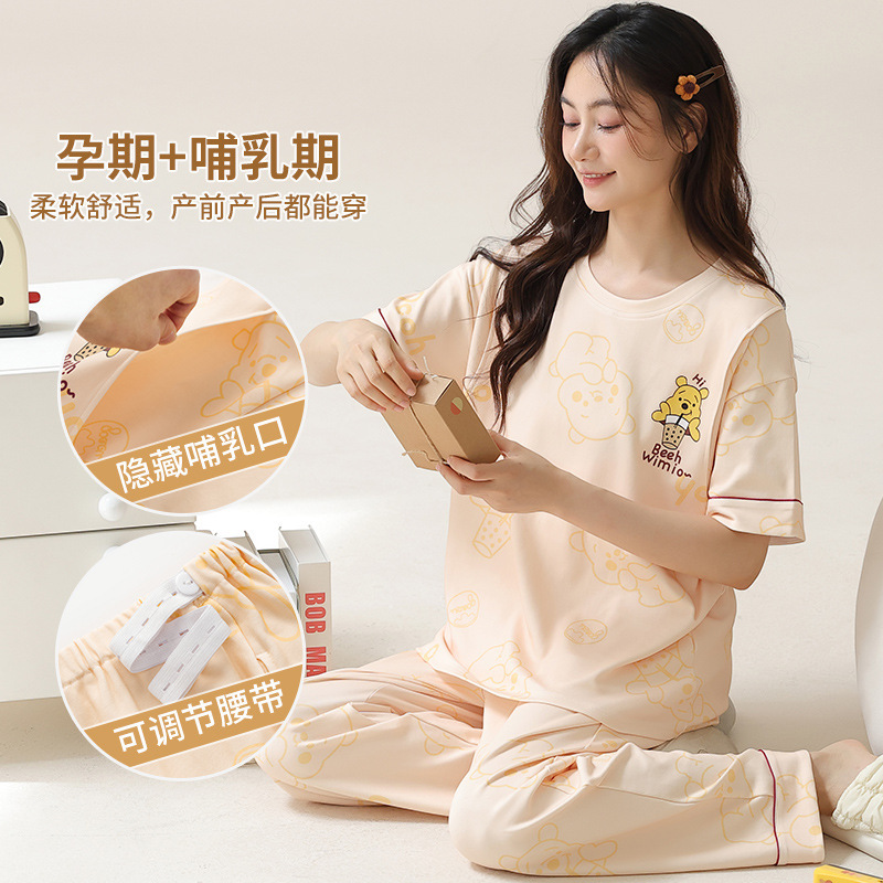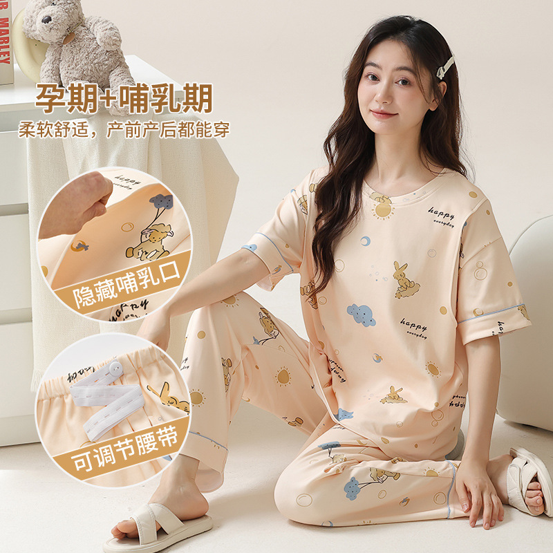 Yuezi 의류 반팔 바지 봄과 여름 얇은 플러스 사이즈 세트 모유 수유 임산부 산후 가정 의류