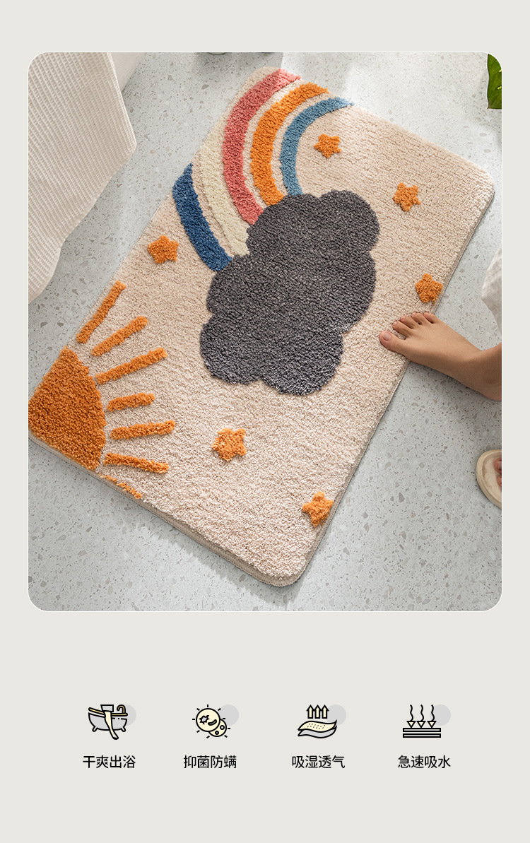 만화 동물 미끄럼 방지 어린이 캐시미어 카펫 침실 장식 욕실 욕실 흡수성 시원한 바닥 매트