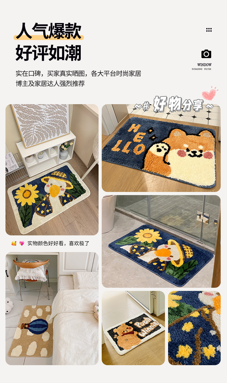 만화 동물 미끄럼 방지 어린이 캐시미어 카펫 침실 장식 욕실 욕실 흡수성 시원한 바닥 매트스토어 가기