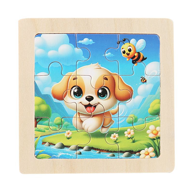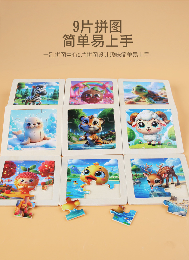 국경 간 어린이 나무 3d 9 조각 작은 퍼즐 소년과 소녀 아기 조기 교육 퍼즐 평면 퍼즐 장난감스토어 가기