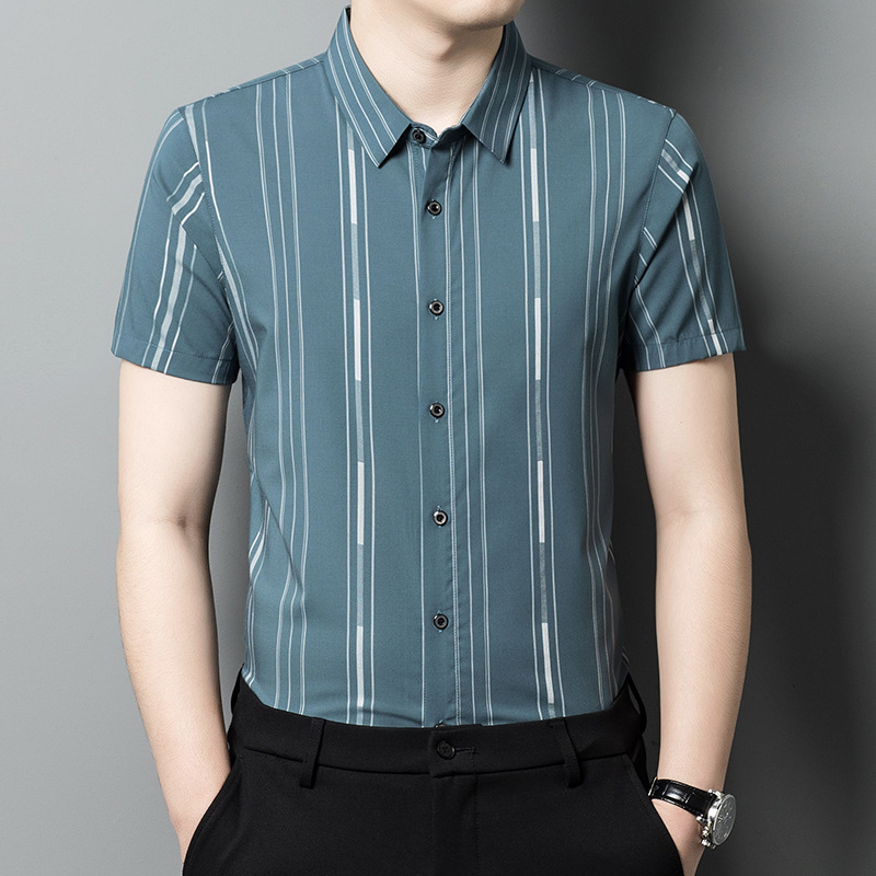 2024 여름 새로운 스트라이프 반팔 셔츠 남성용 젊은 및 중년 비즈니스 캐주얼 하프 슬리브 공식 셔츠 조수