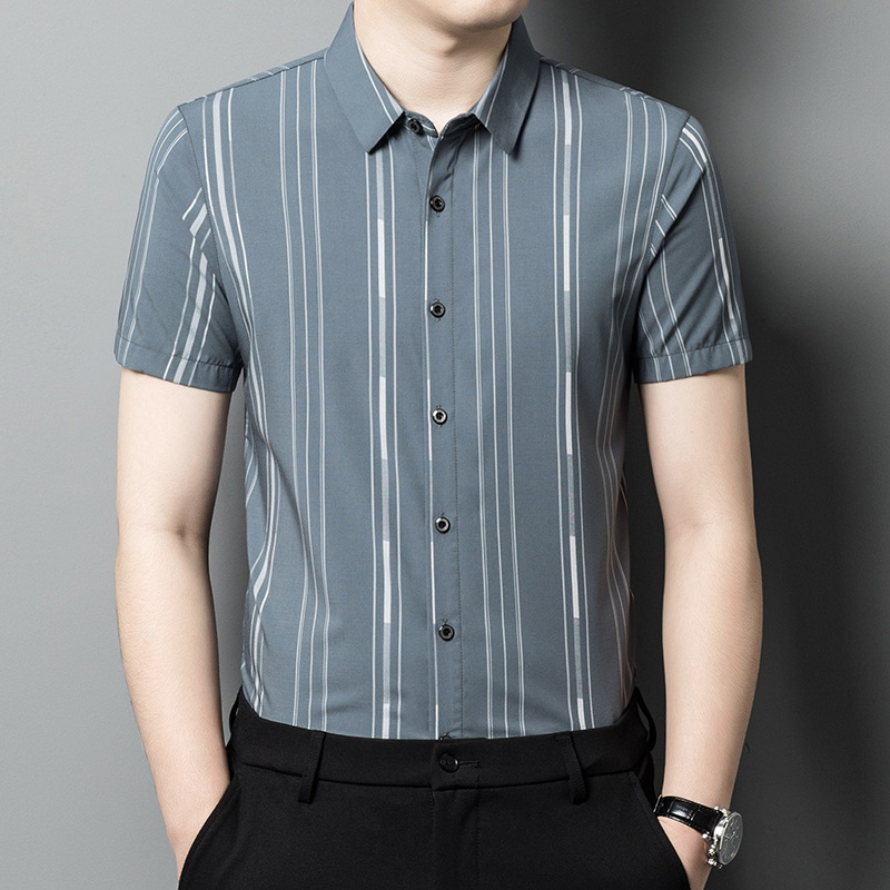 2024 여름 새로운 스트라이프 반팔 셔츠 남성용 젊은 및 중년 비즈니스 캐주얼 하프 슬리브 공식 셔츠 조수스토어 가기