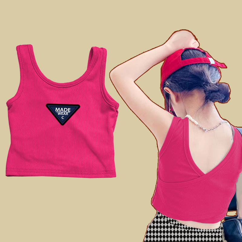 여아용 짧은 캐미솔, 여아용 배꼽 노출 상의, 어린이용 여름용 얇은 민소매 셔츠