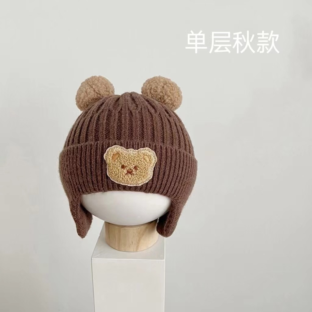 가을 겨울 아기 니트 모자 새로운 귀여운 작은 곰 아기 소년과 소녀 겨울 기모 울 모자 귀 보호 어린이 모자스토어 가기