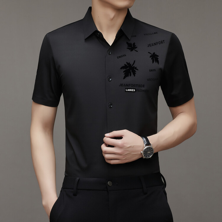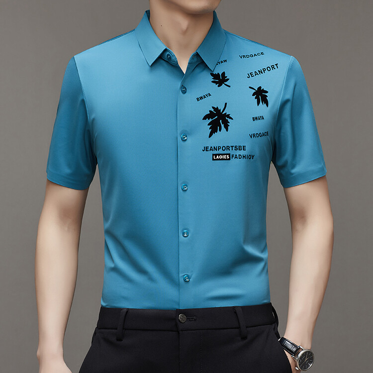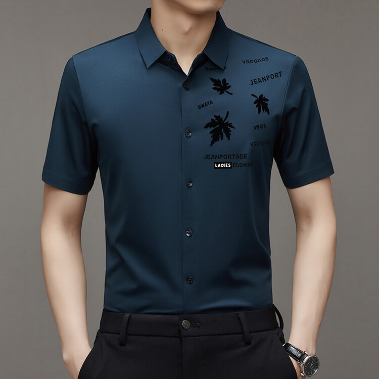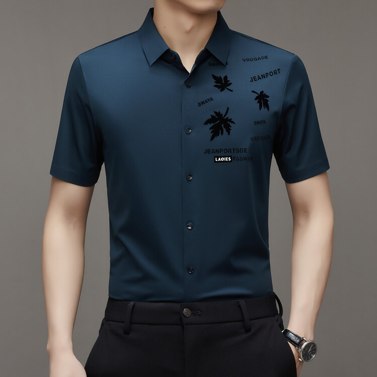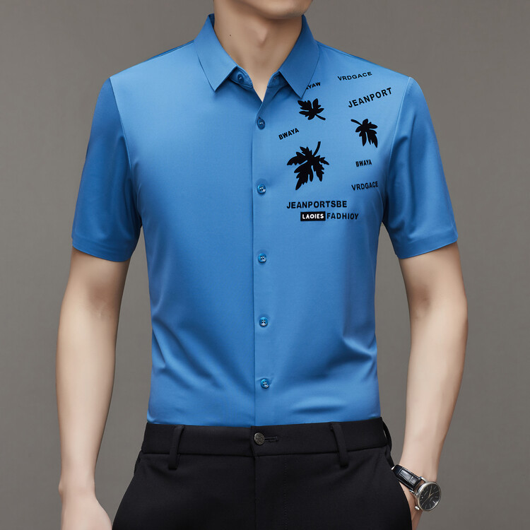 夏季男式短袖痕衬衫时尚休闲男装印花薄款半袖衬衣男一件代发