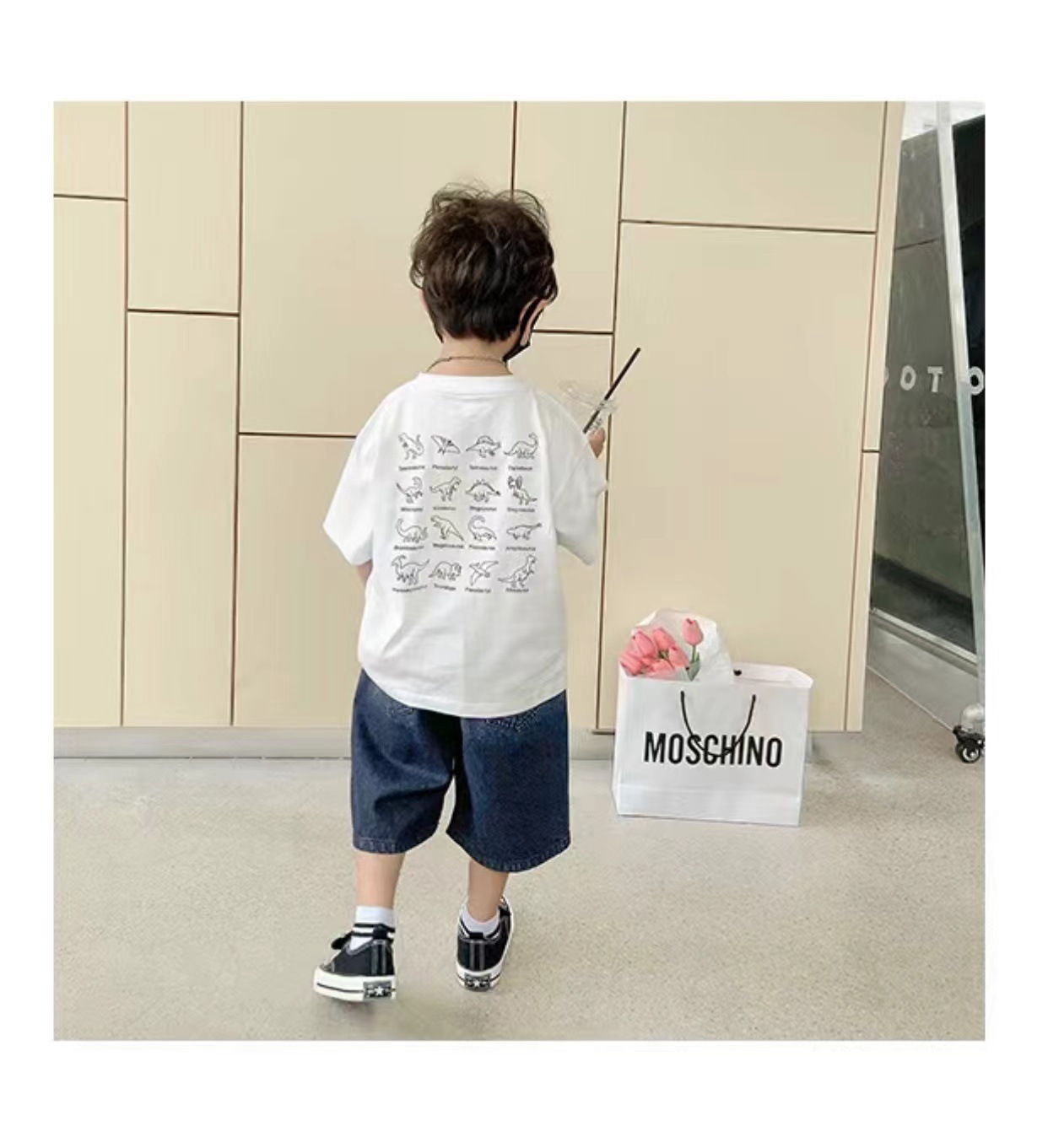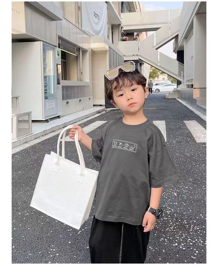 어린이 여름 옷 소년 순면 반팔 티셔츠 2024 여름 새 아기 반소매 트렌디 탑스토어 가기