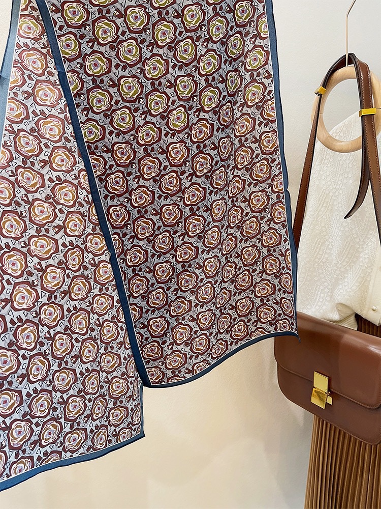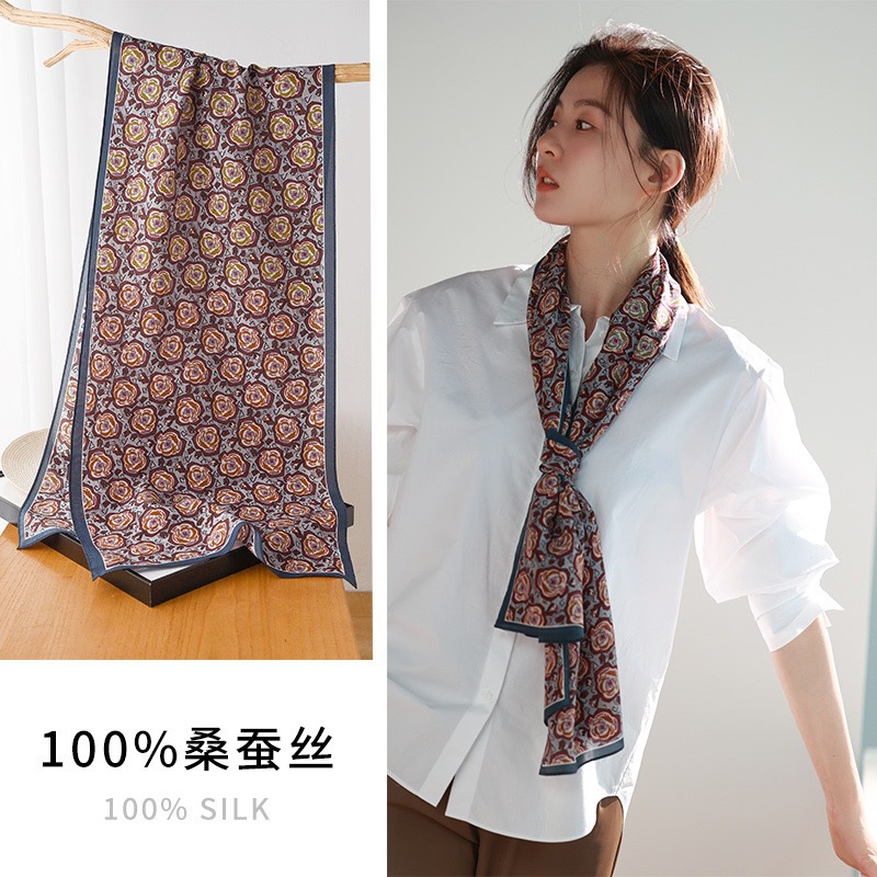 재고 있음 항저우 실크 롱 스카프, 복고풍 스타일, 100% 뽕나무 실크, 크레이프 드 신 실크 스카프, 여름용 가벼운 실크 스카프