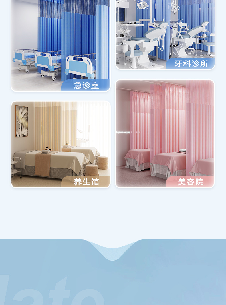 병원 특수 의료 커튼, 뷰티 살롱, 파티션 커튼, 건강 보존 홀, 불 침투성 개인 정보 커튼, 화염 지연 U 자형 L 자형 드로우 커튼스토어 가기