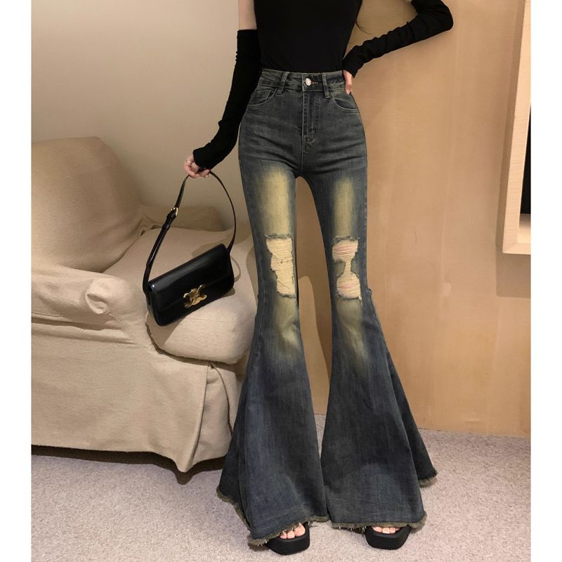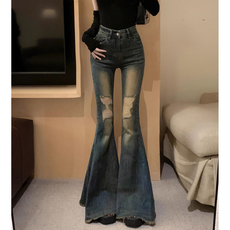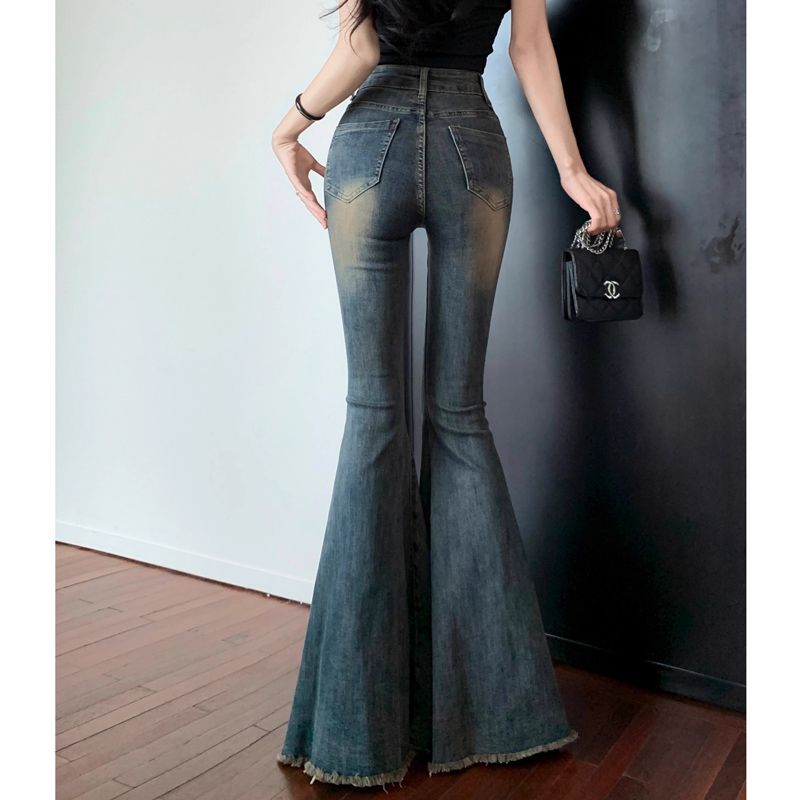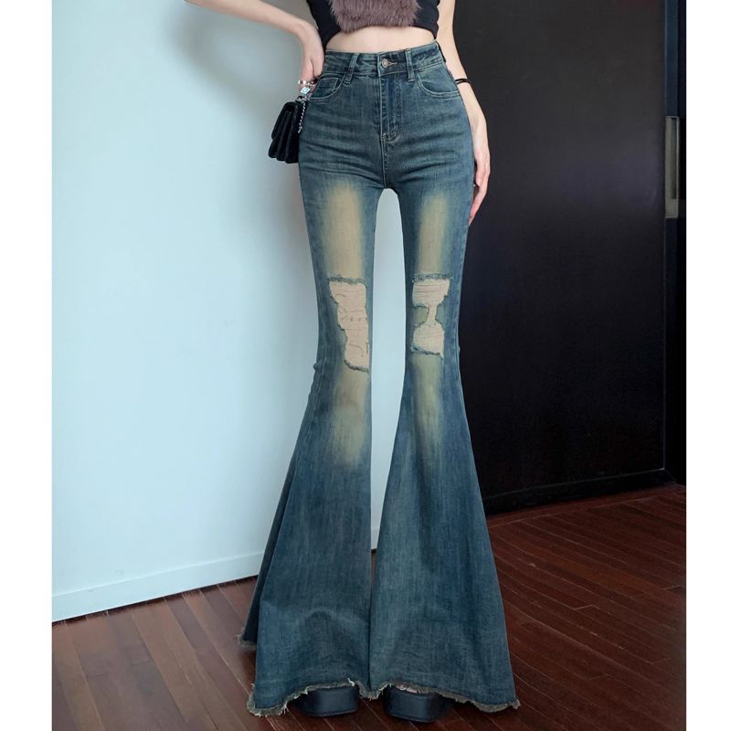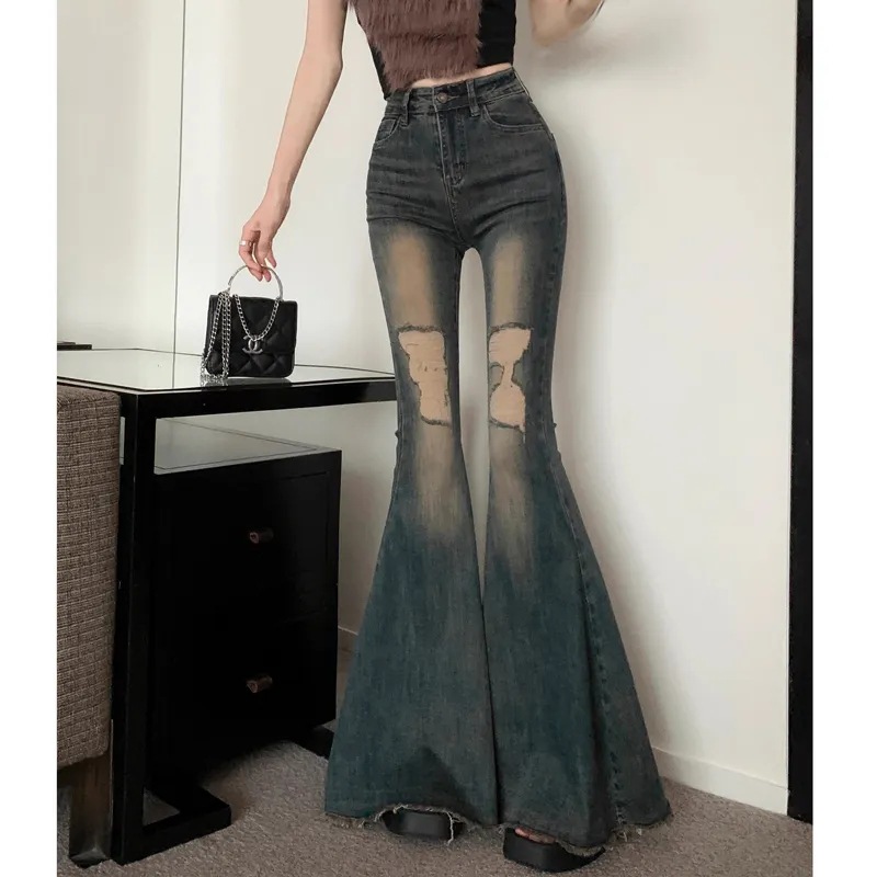 여름 새로운 미국 스타일 뜨거운 소녀 바지 마이크로 라르 청바지 여성용 걸레 바지 레트로 세탁 된 걸레 바지