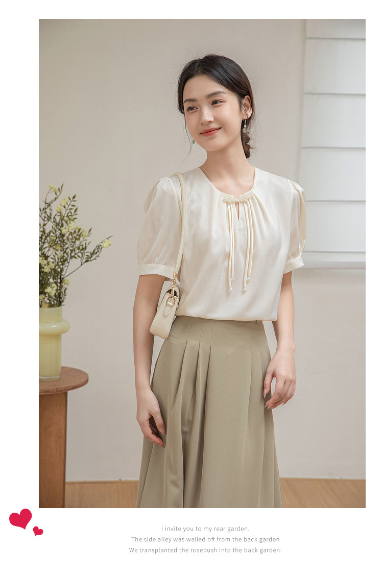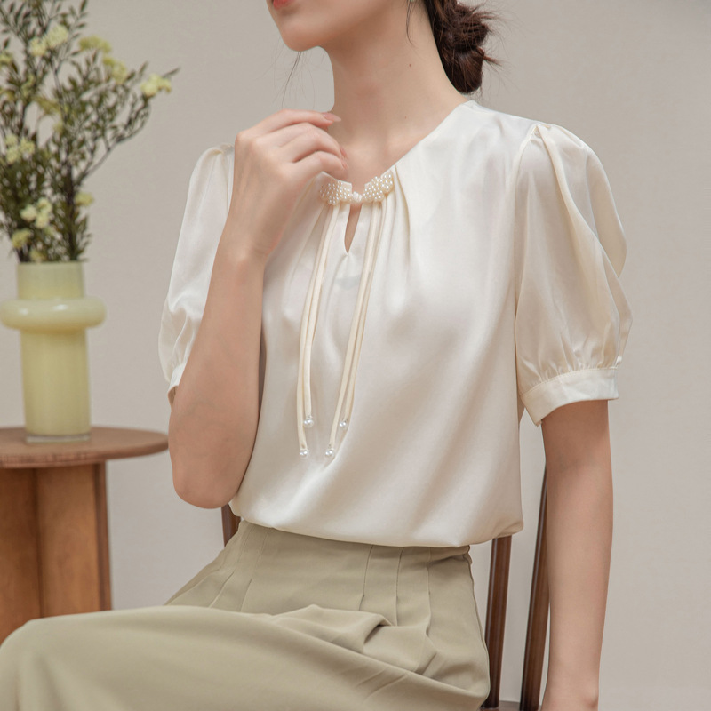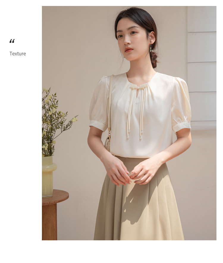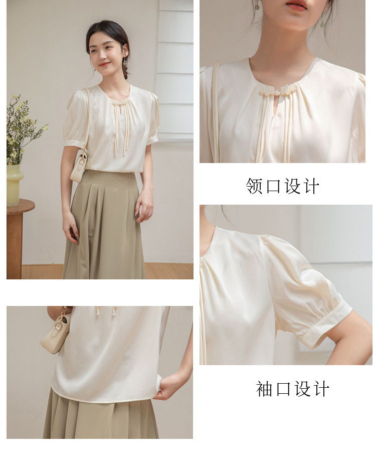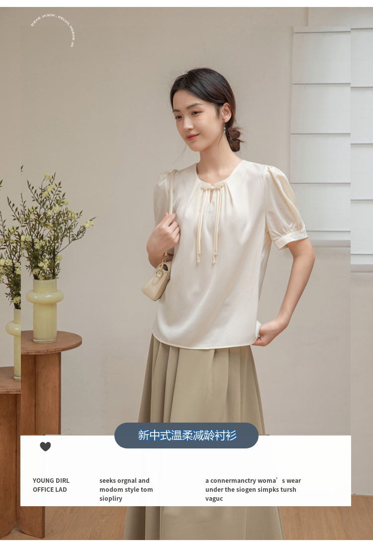 레트로 새로운 중국 버튼 짧은 소매 셔츠 여름 새로운 국가 스타일 V 옷깃 새틴 통근 전문 셔츠 도매스토어 가기
