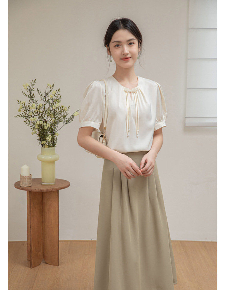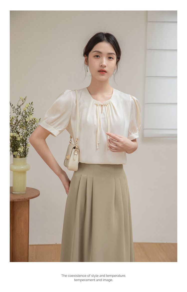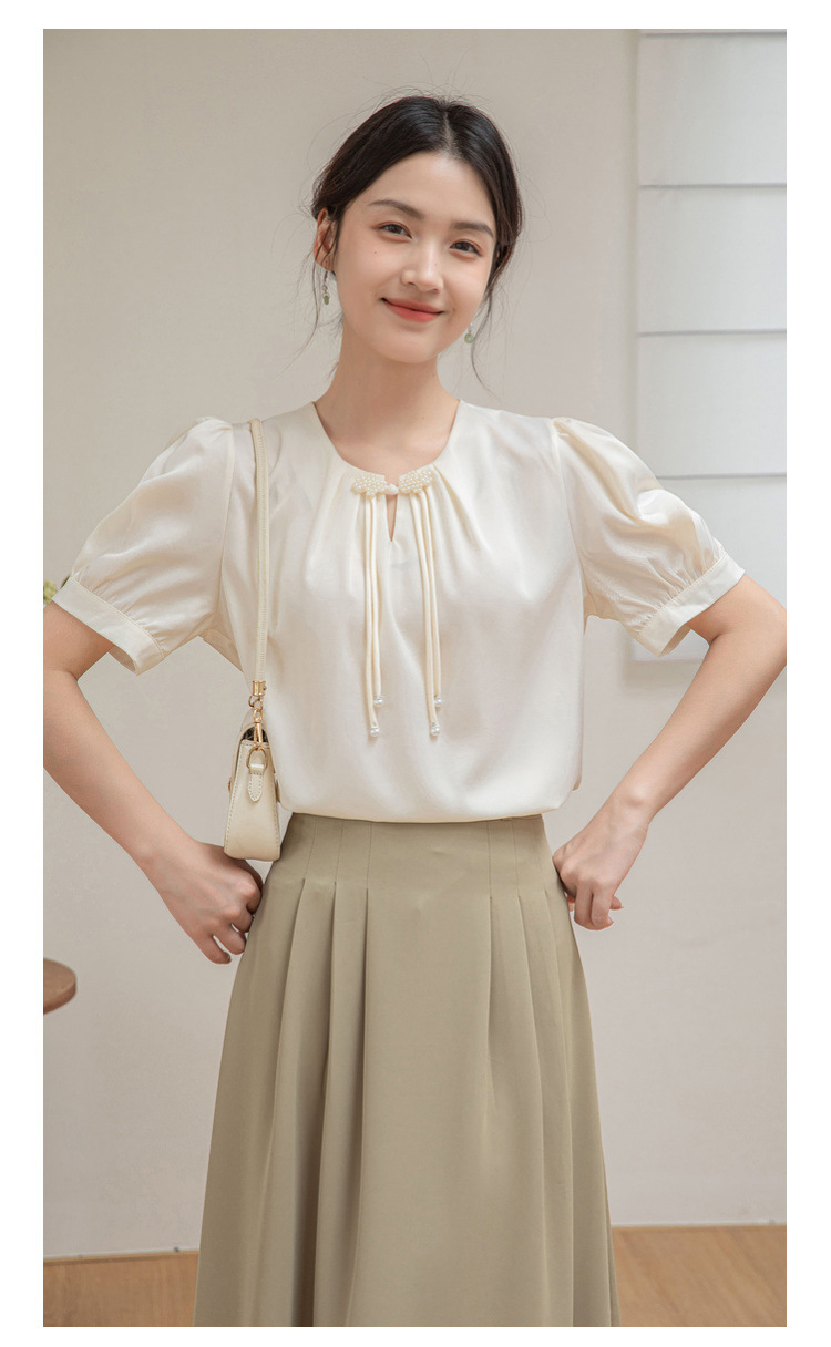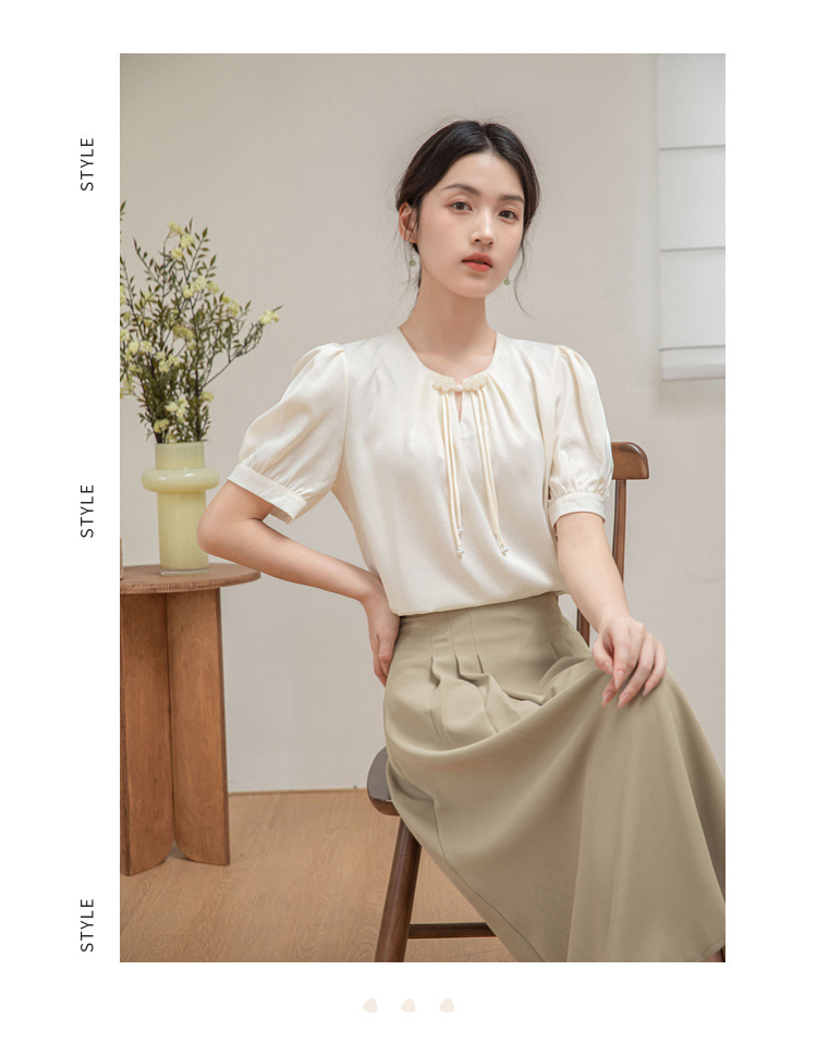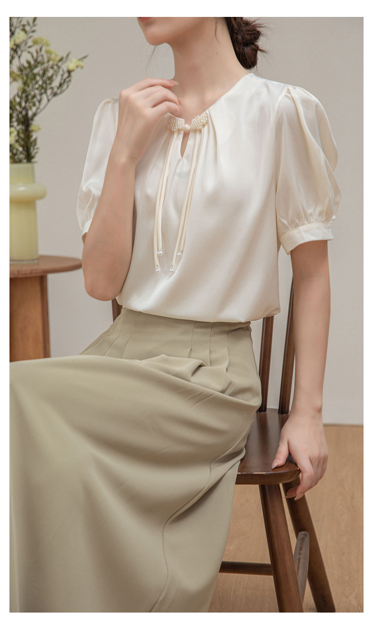 레트로 새로운 중국 버튼 짧은 소매 셔츠 여름 새로운 국가 스타일 V 옷깃 새틴 통근 전문 셔츠 도매스토어 가기