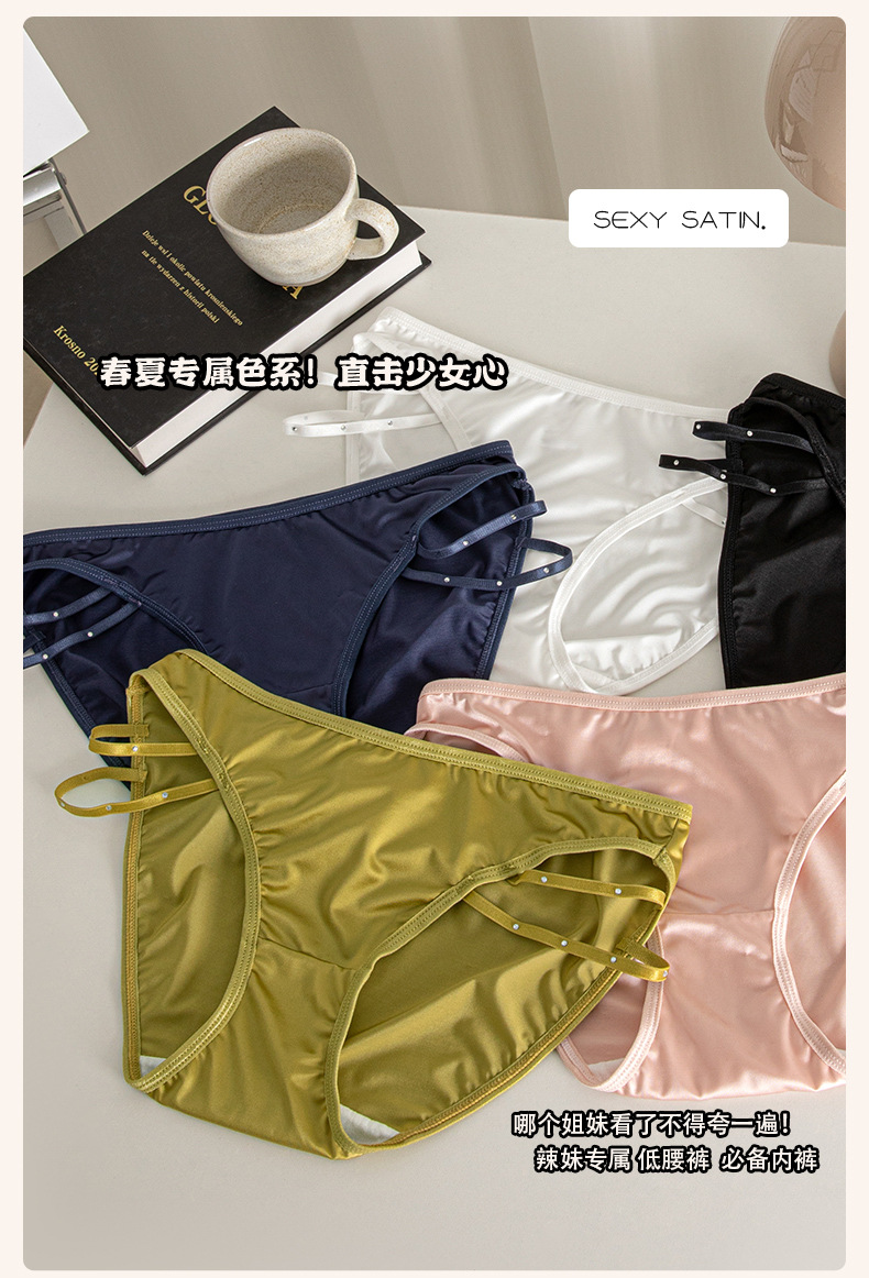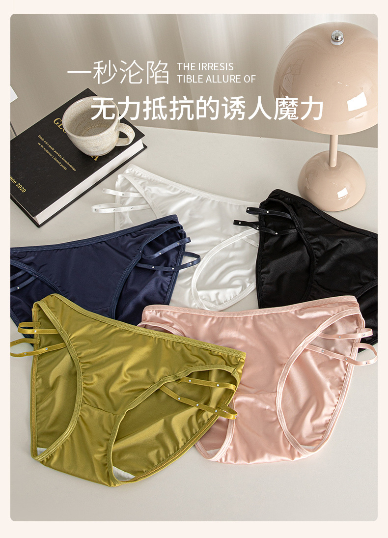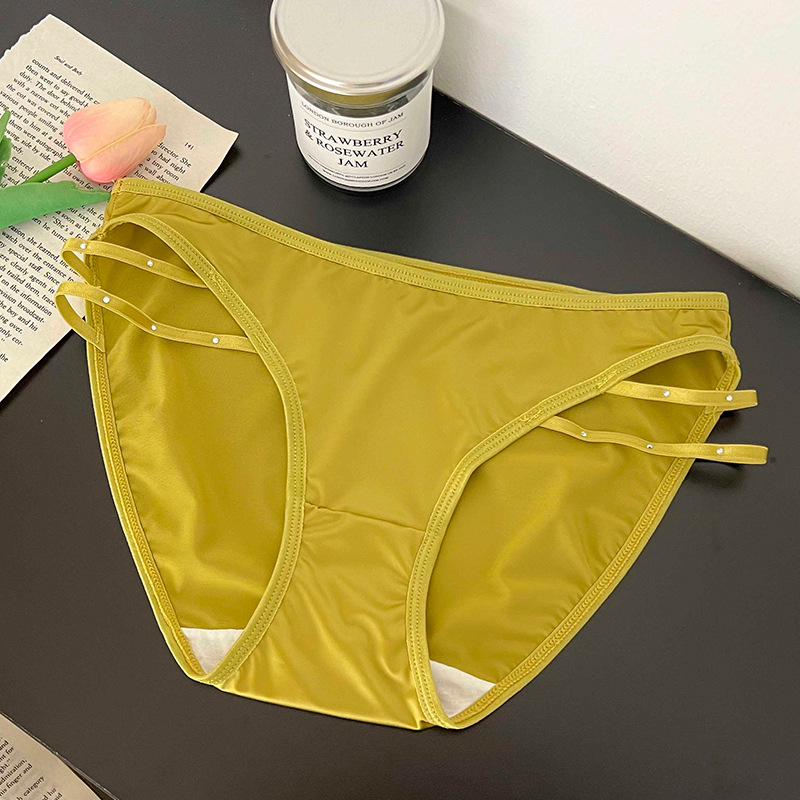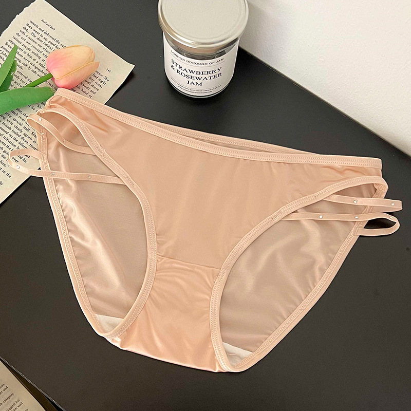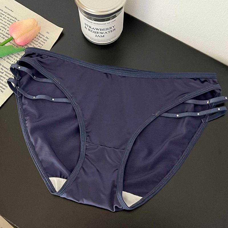 실키 유럽과 미국의 스포츠 스타일 트레이스리스 속옷 여성용 섹시 할로우 크로스 코튼 크로트 미드 허리 브리프