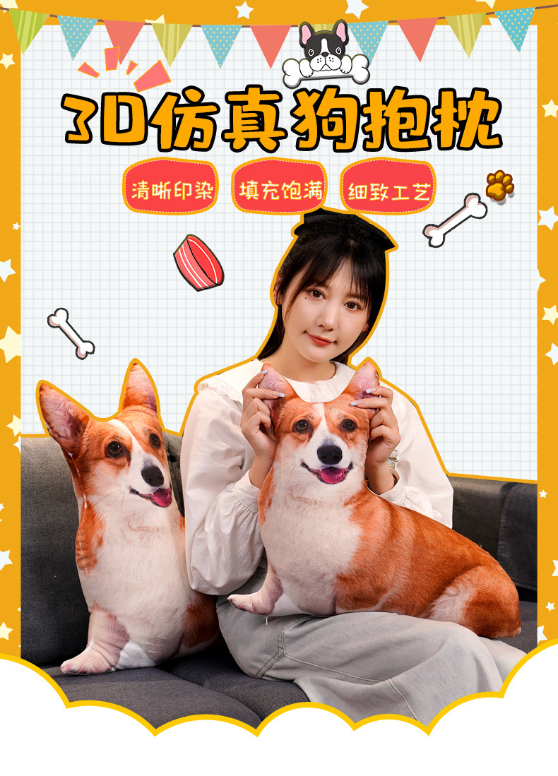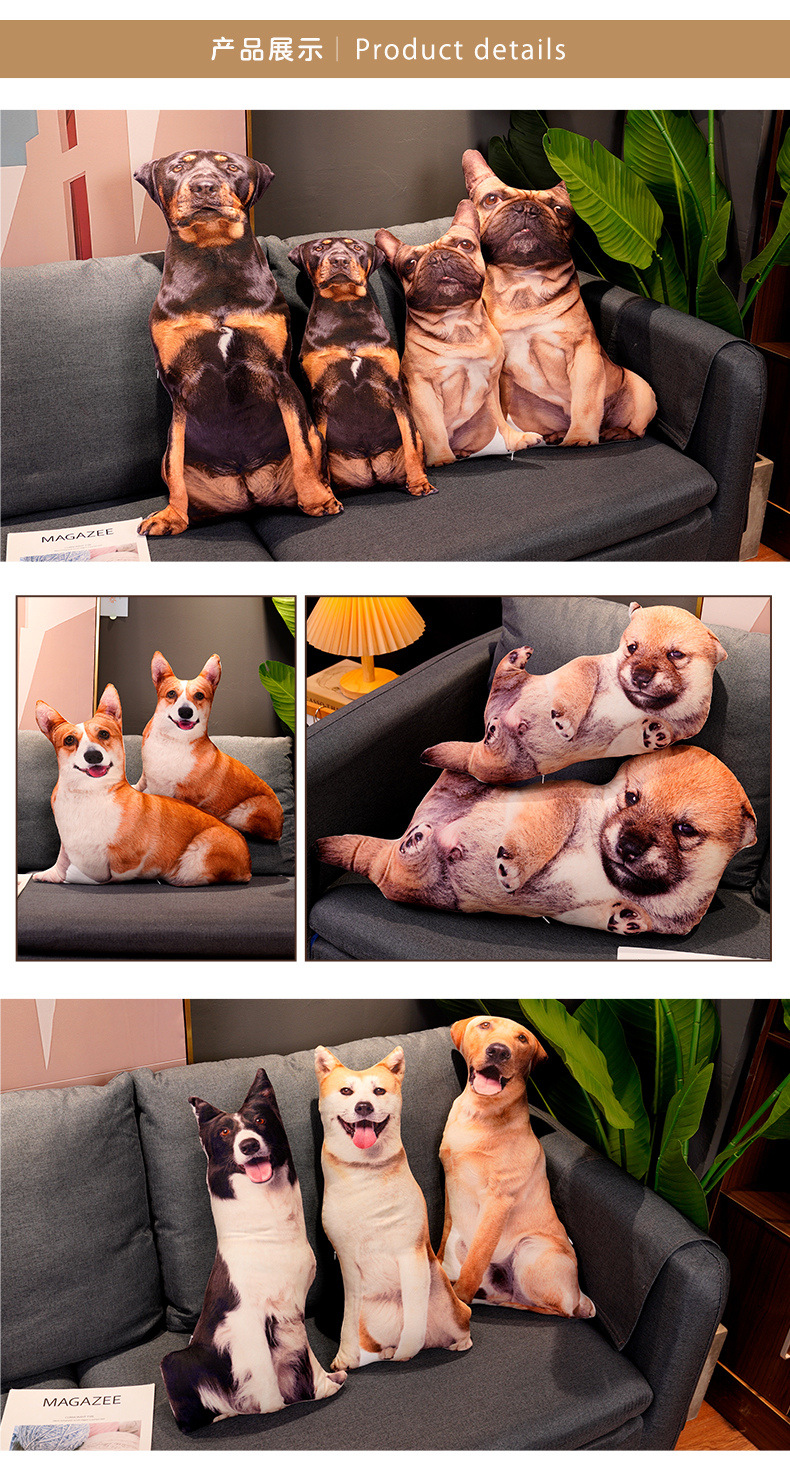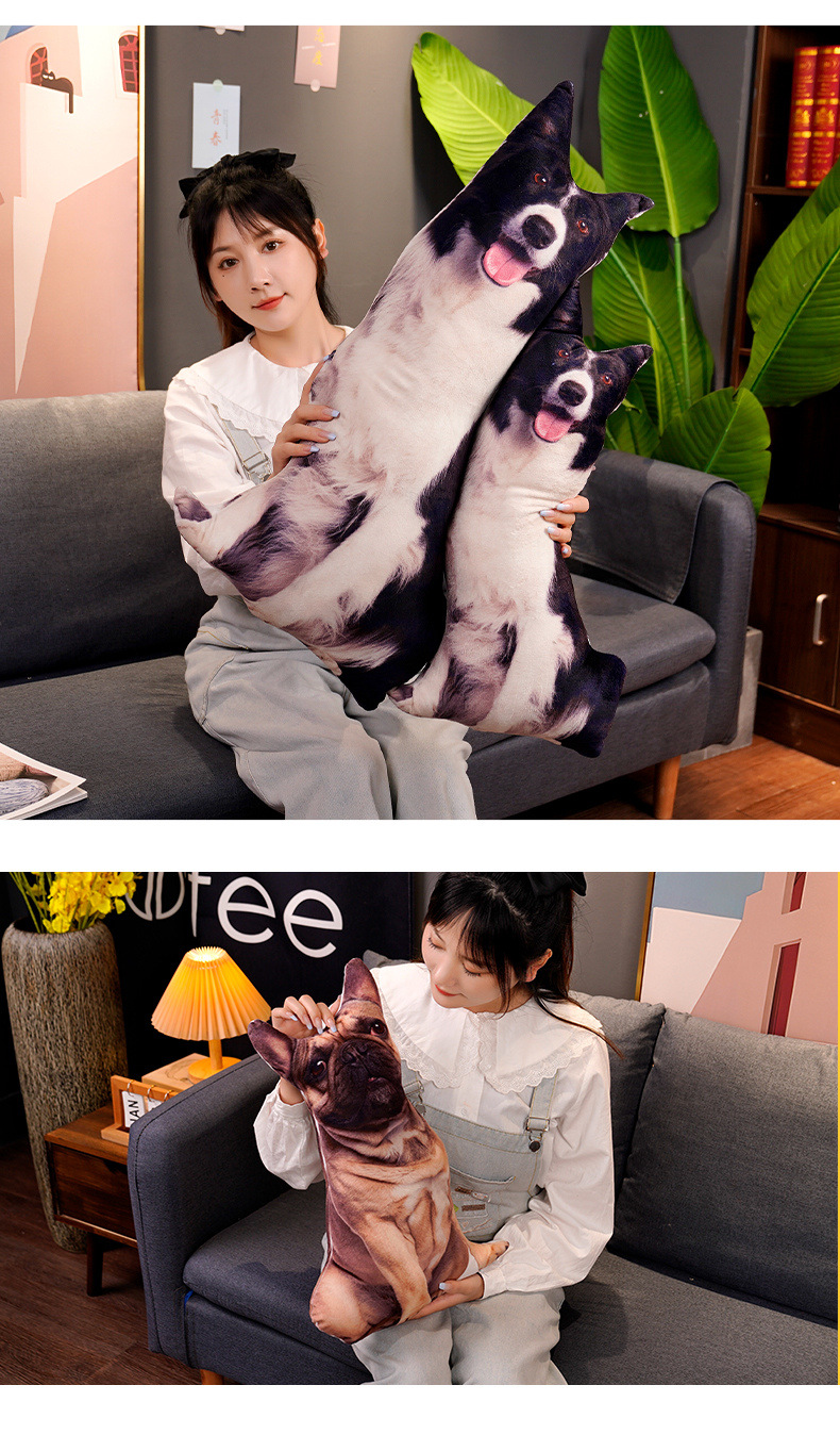 재미있는 3D 시뮬레이션 개 베개 차이 개 불독 봉제 장난감 래브라도 인형 장식품 인형