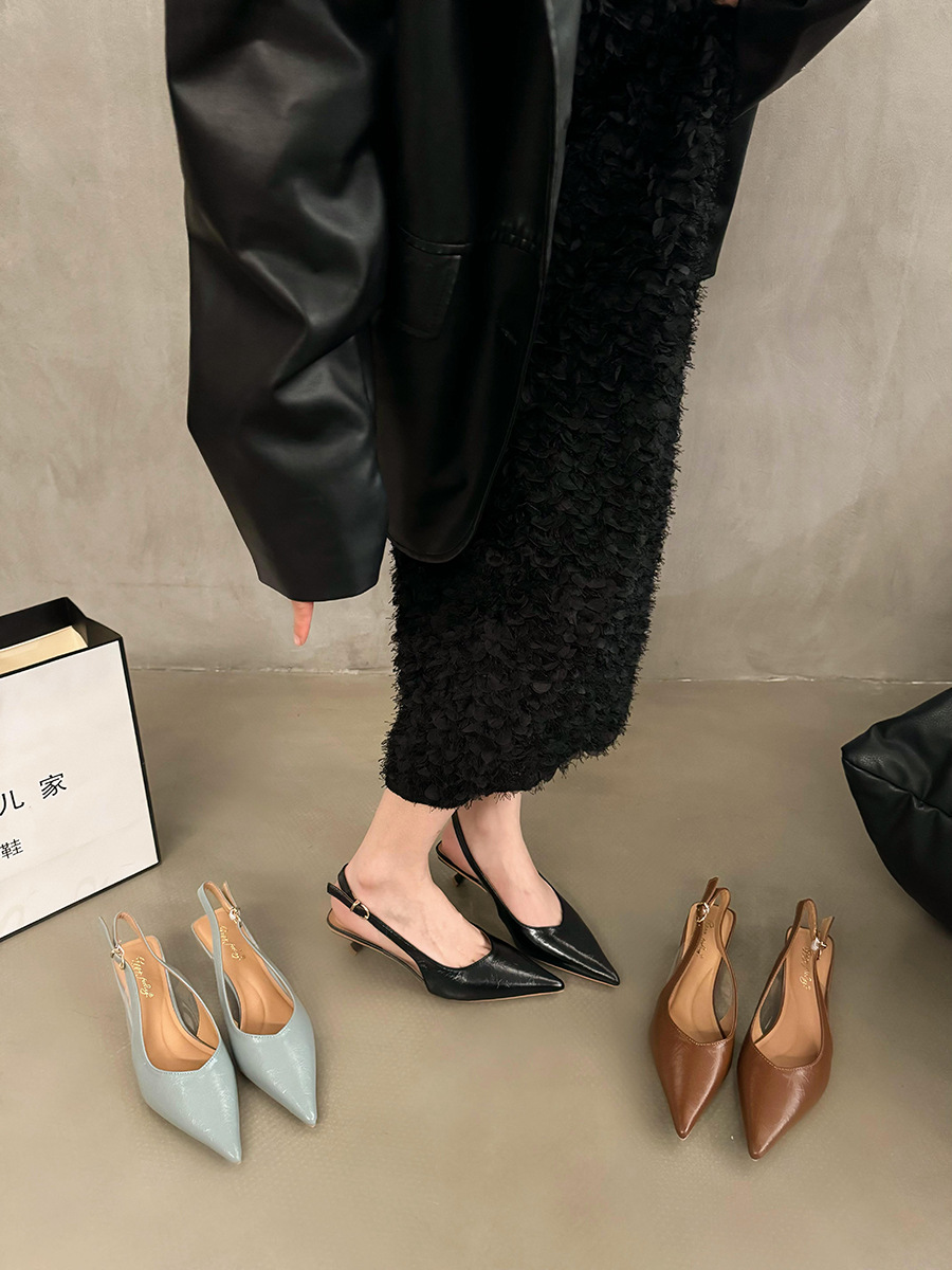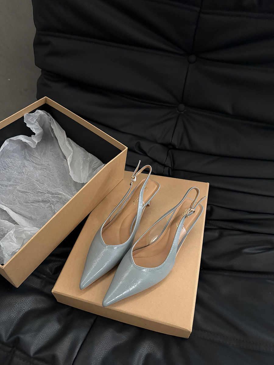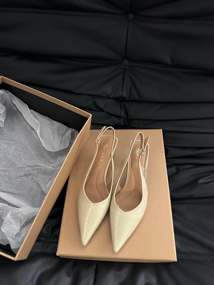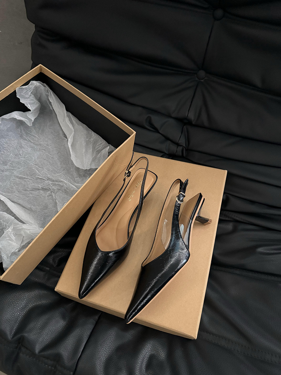 봄과 가을 2024 새로운 낮은 굽 신발 여성용 얇은 발 뒤꿈치 특허 가죽 하이 엔드 기질 Cool Baotou를위한 다시 빈 신발스토어 가기