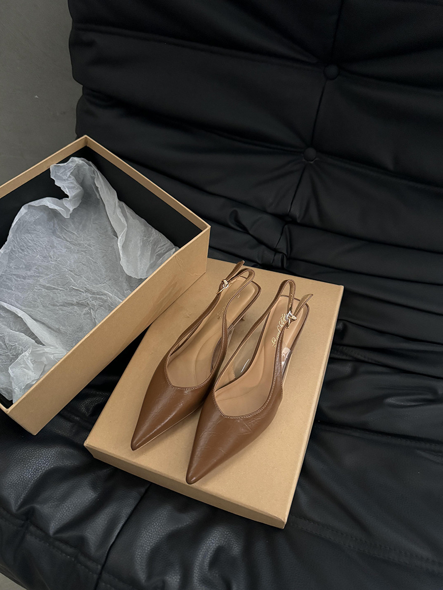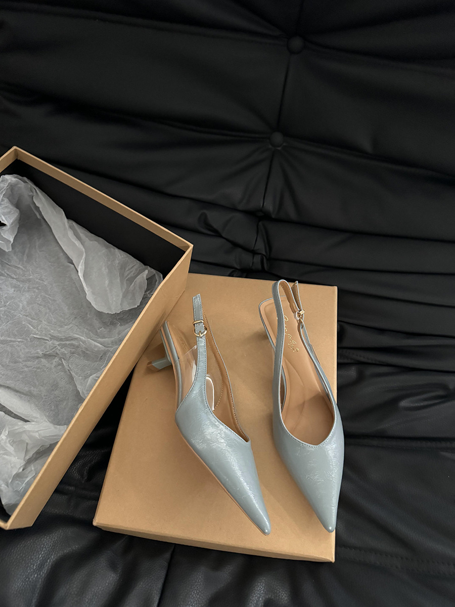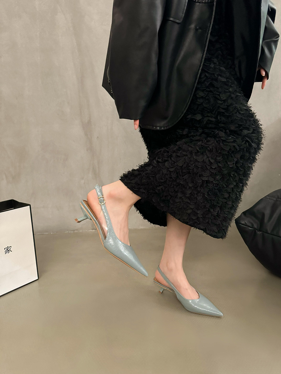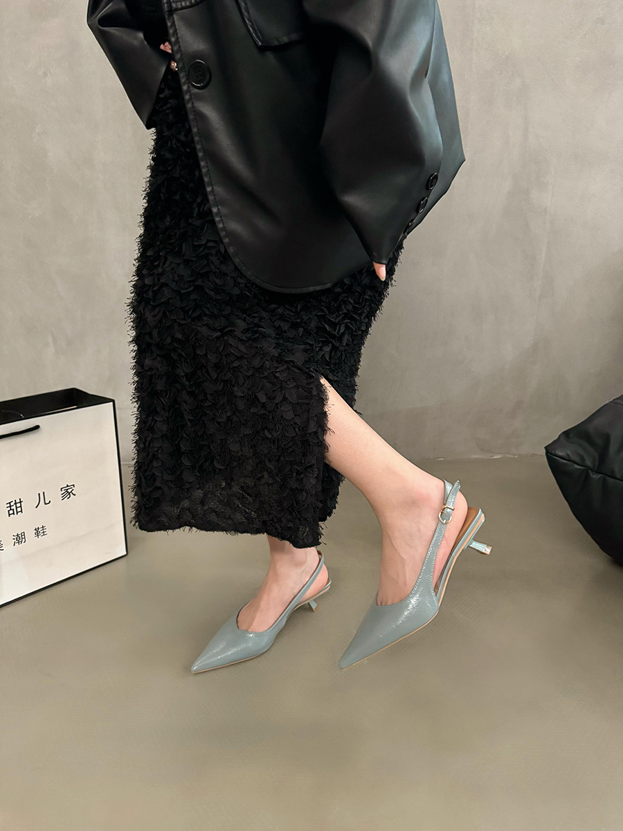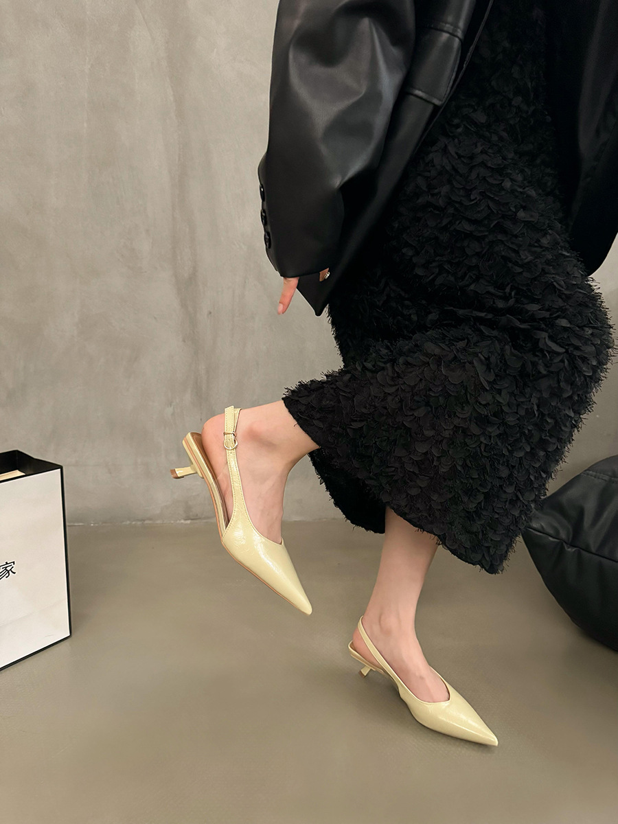 봄과 가을 2024 새로운 낮은 굽 신발 여성용 얇은 발 뒤꿈치 특허 가죽 하이 엔드 기질 Cool Baotou를위한 다시 빈 신발스토어 가기