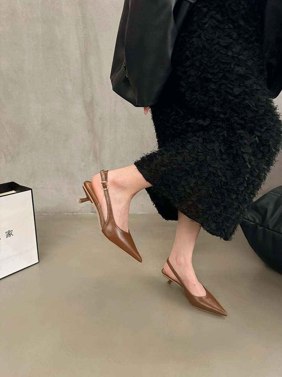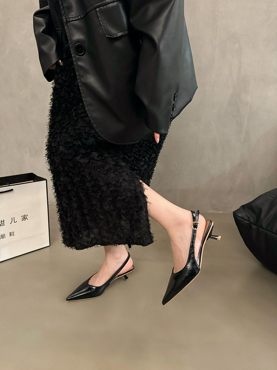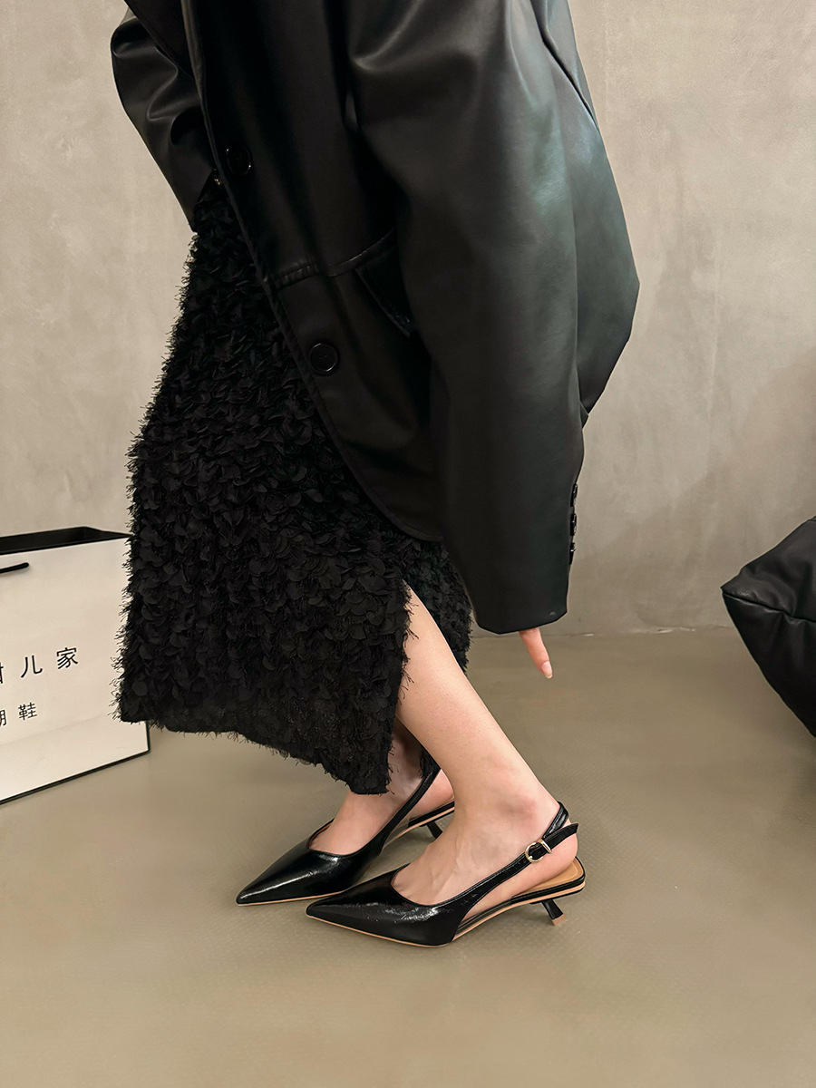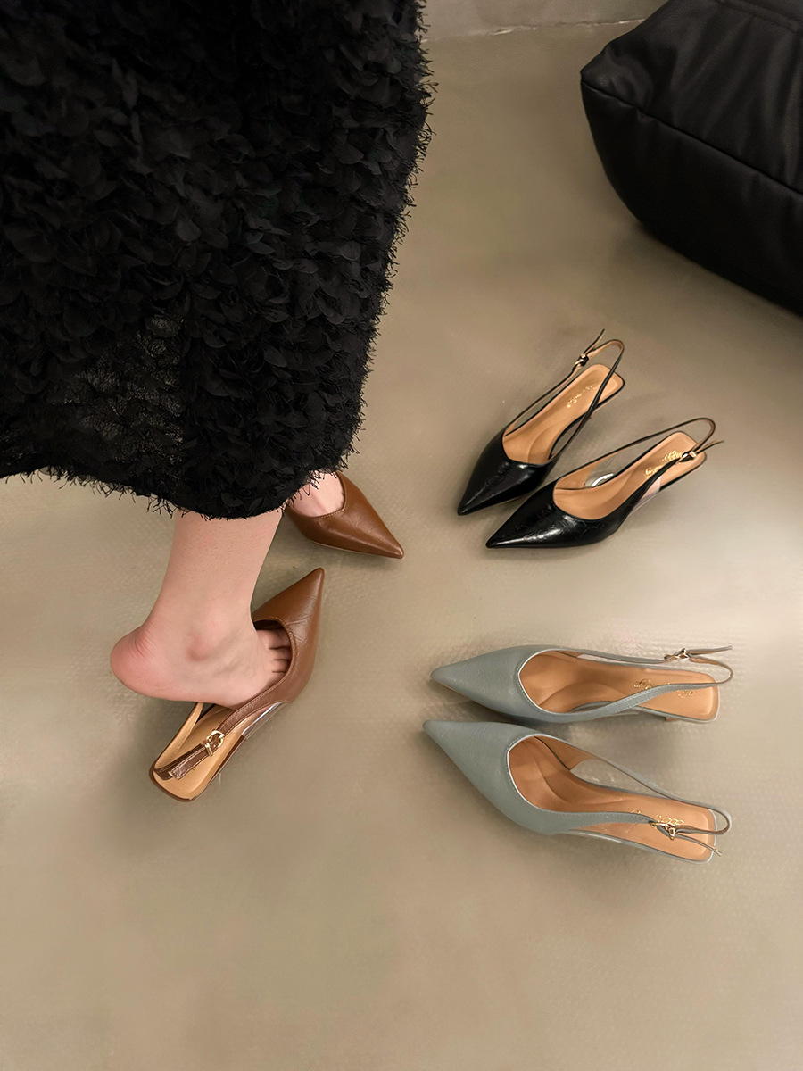 봄과 가을 2024 새로운 낮은 굽 신발 여성용 얇은 발 뒤꿈치 특허 가죽 하이 엔드 기질 Cool Baotou를위한 다시 빈 신발스토어 가기