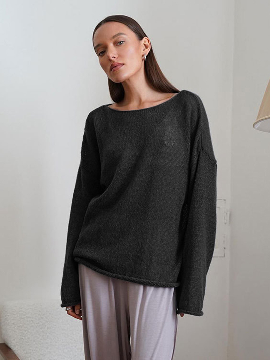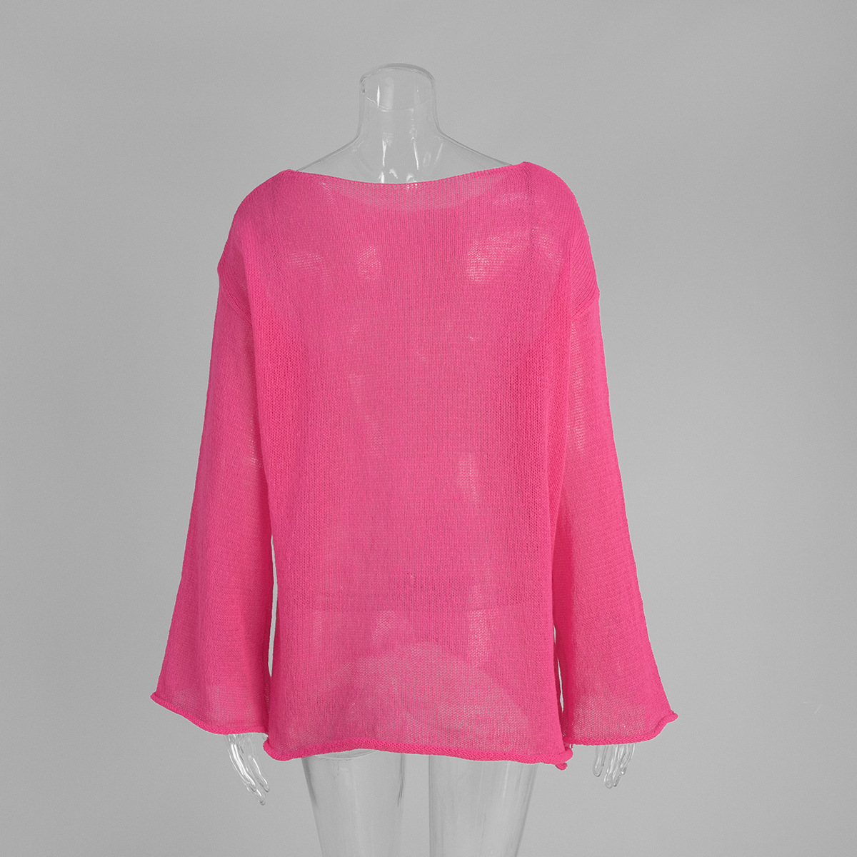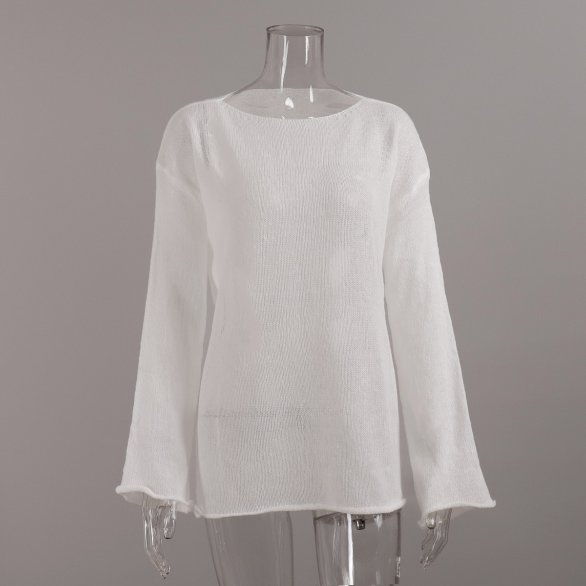 크로스보더 중공 스웨터 유럽과 미국 2025 봄 여름 신작 여성용 시스루 얇은 대형 라운드 넥 벨 슬리브 니트 티셔츠스토어 가기