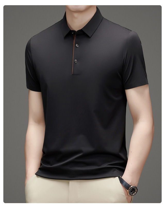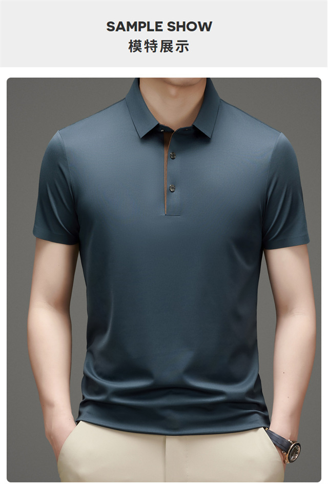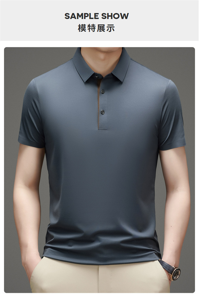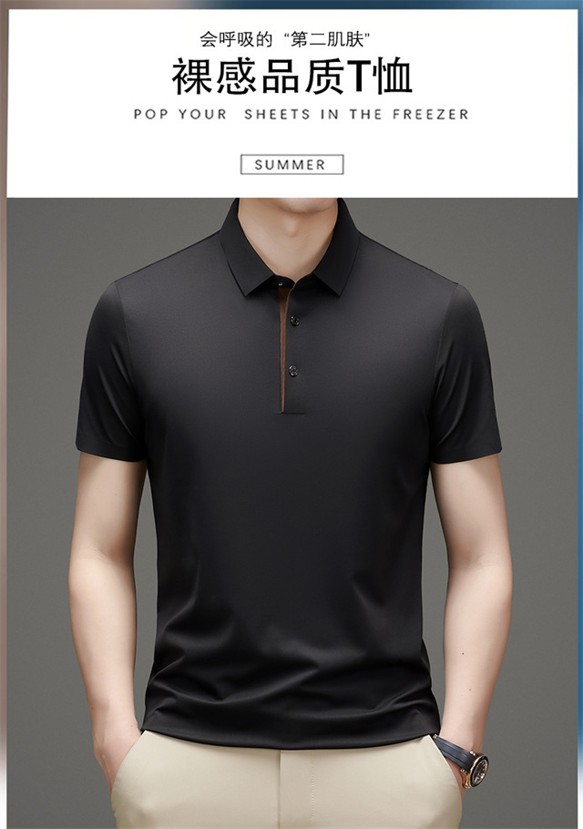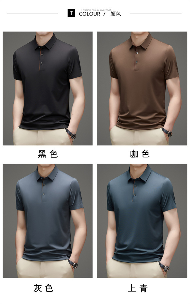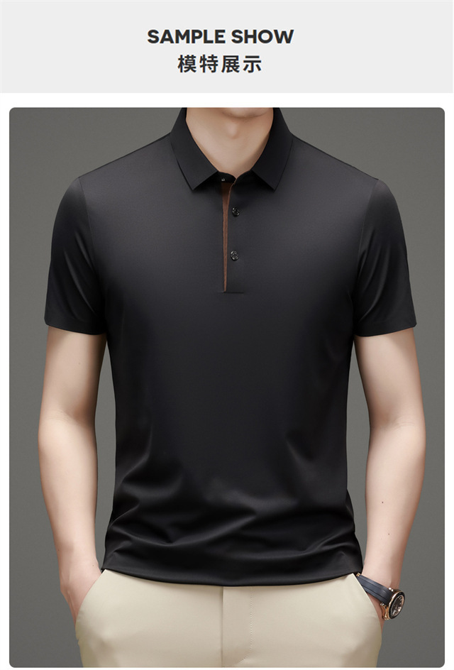 夏季男士无痕速干透气商务休闲Polo衫冰丝弹力纯色大码短袖T恤男