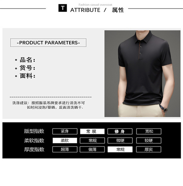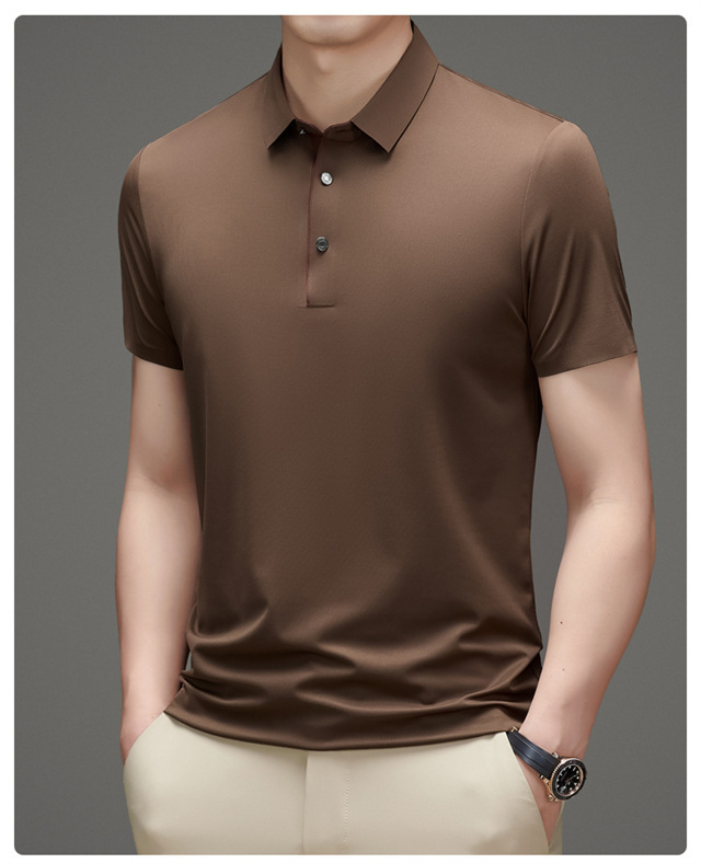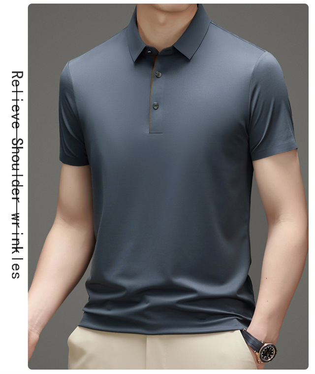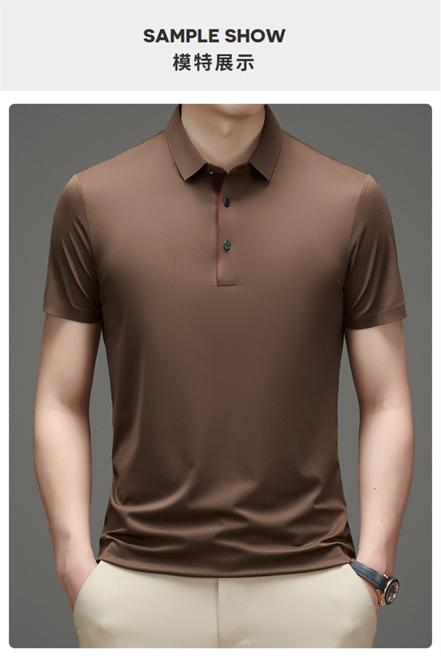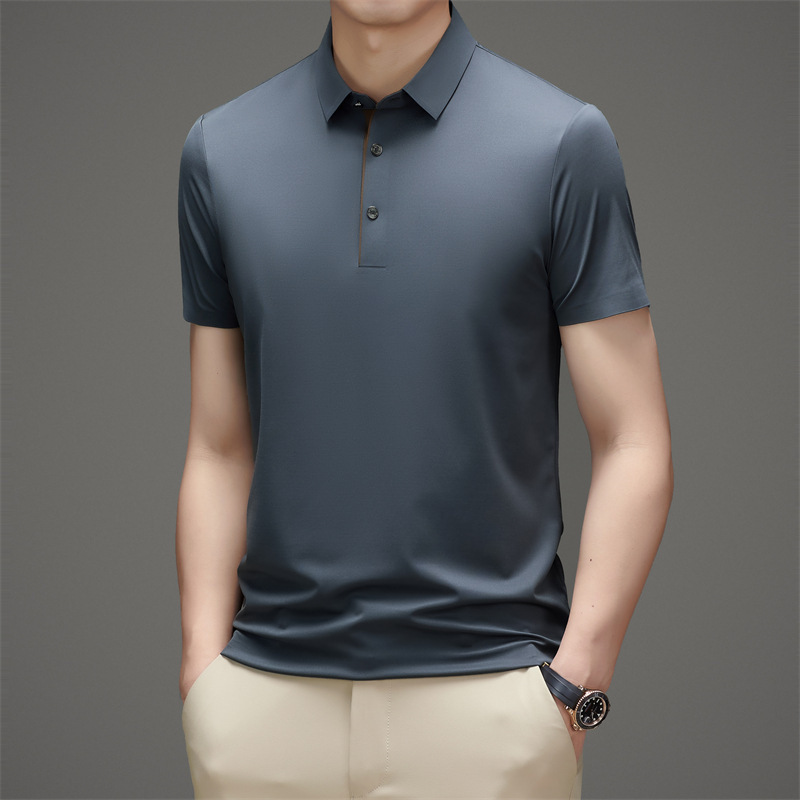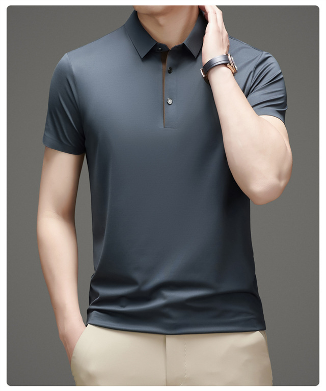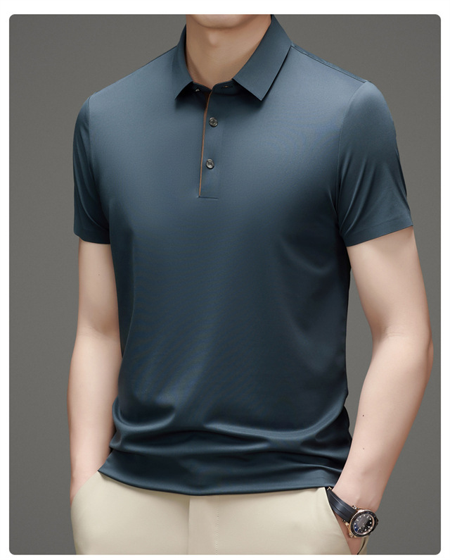 夏季男士无痕速干透气商务休闲Polo衫冰丝弹力纯色大码短袖T恤男