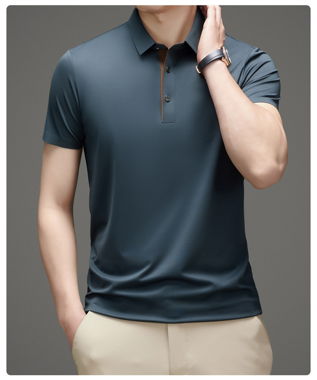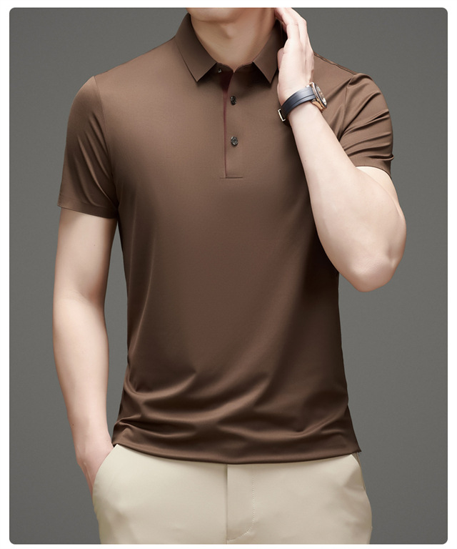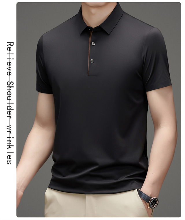 여름 남성 추적없는 빠른 건조 통기성 비즈니스 캐주얼 폴로 셔츠 아이스 실크 탄성 솔리드 컬러 플러스 사이즈 남성용 반팔 티셔츠