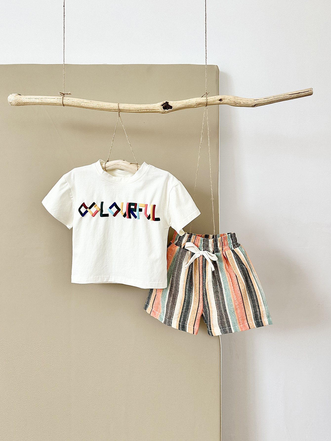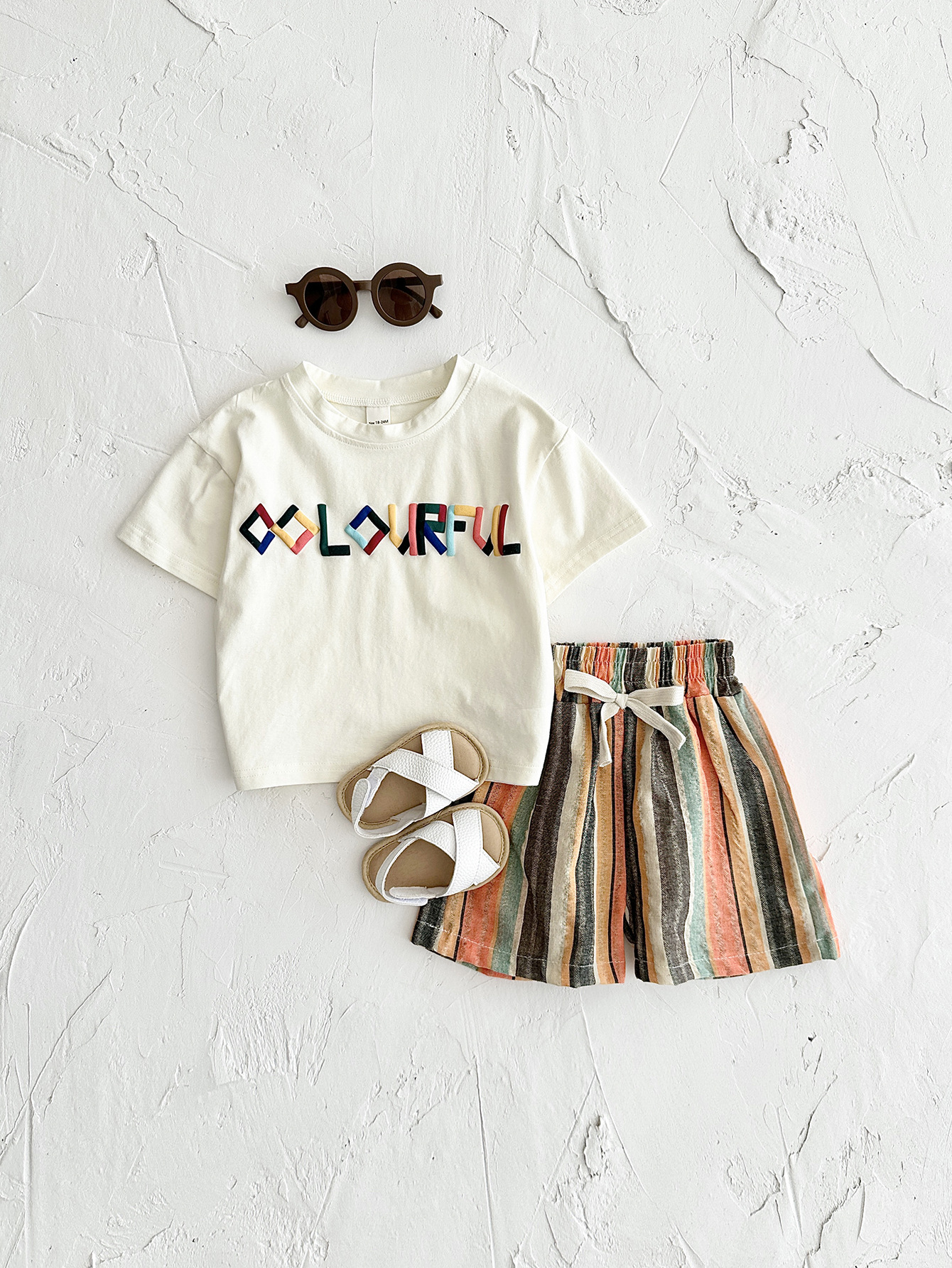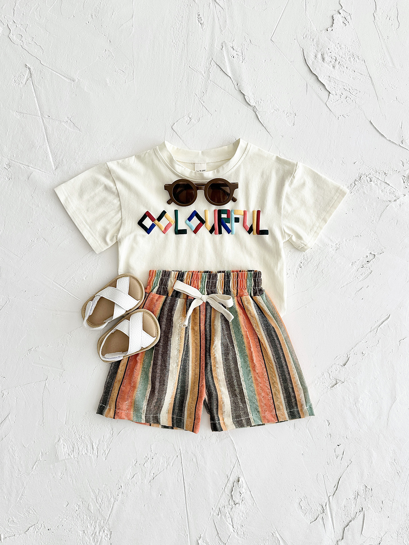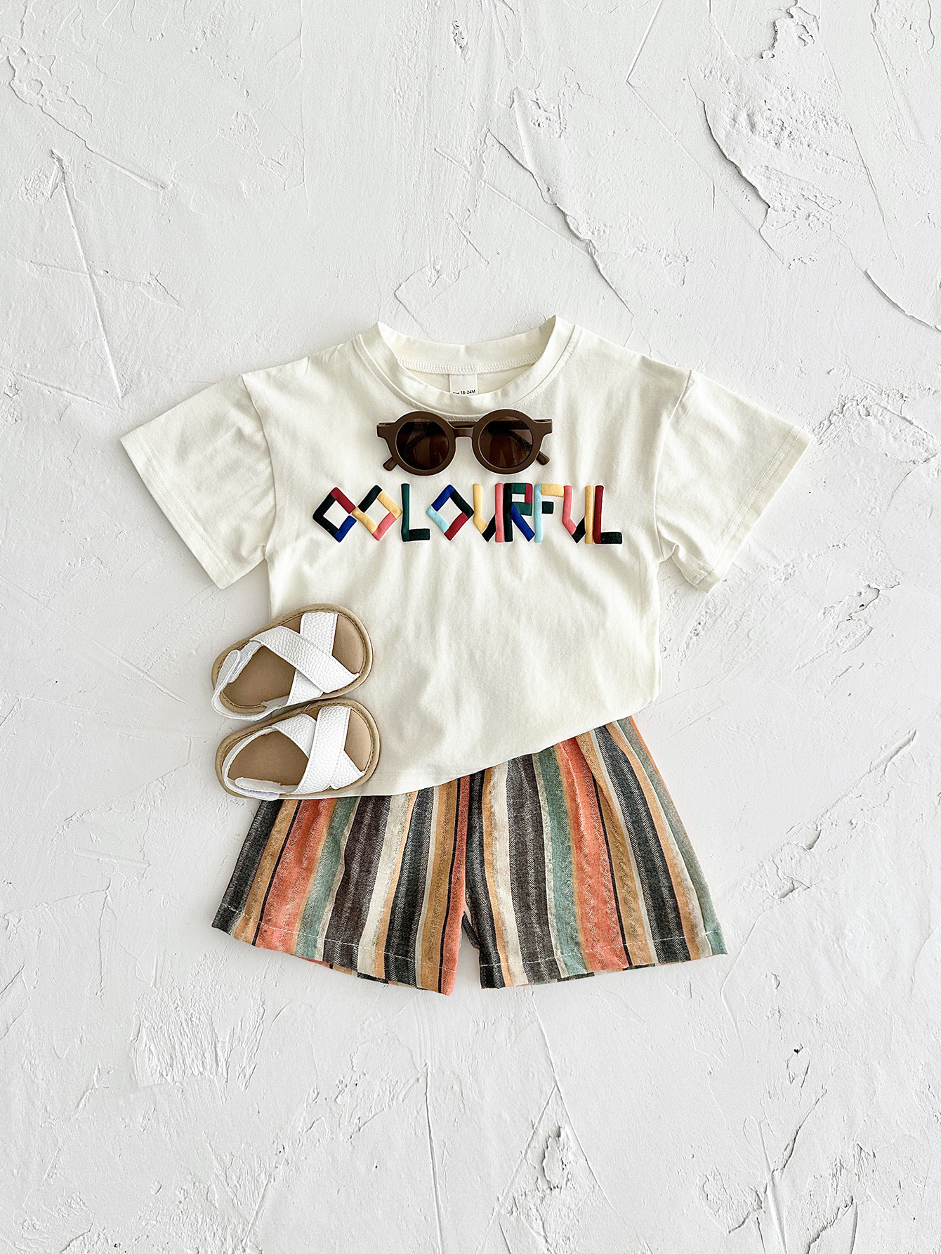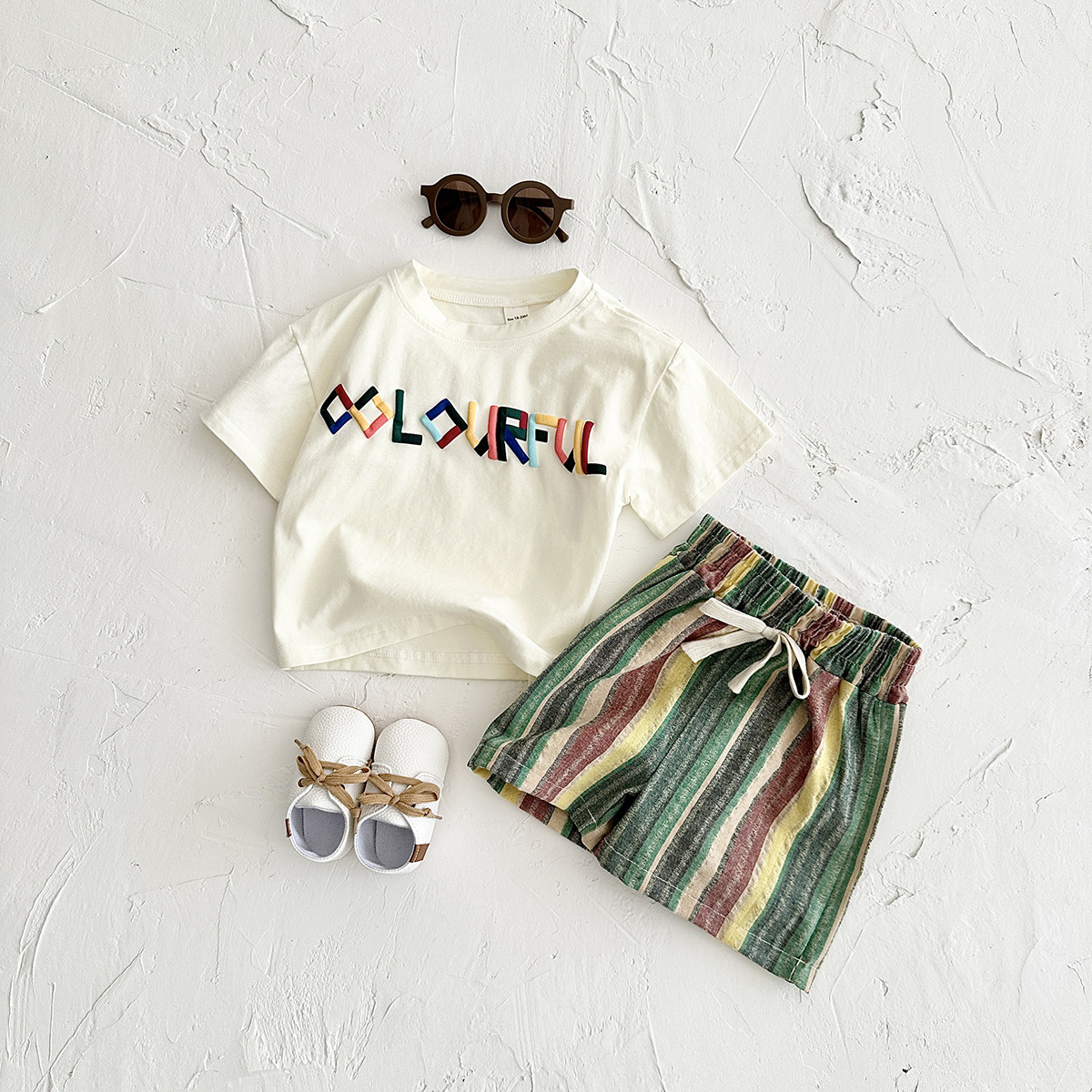 INS 여름 아동복 편지 자수 티셔츠 짧은 소매 반바지 세트 한국 어린이 아기 투피스 국경