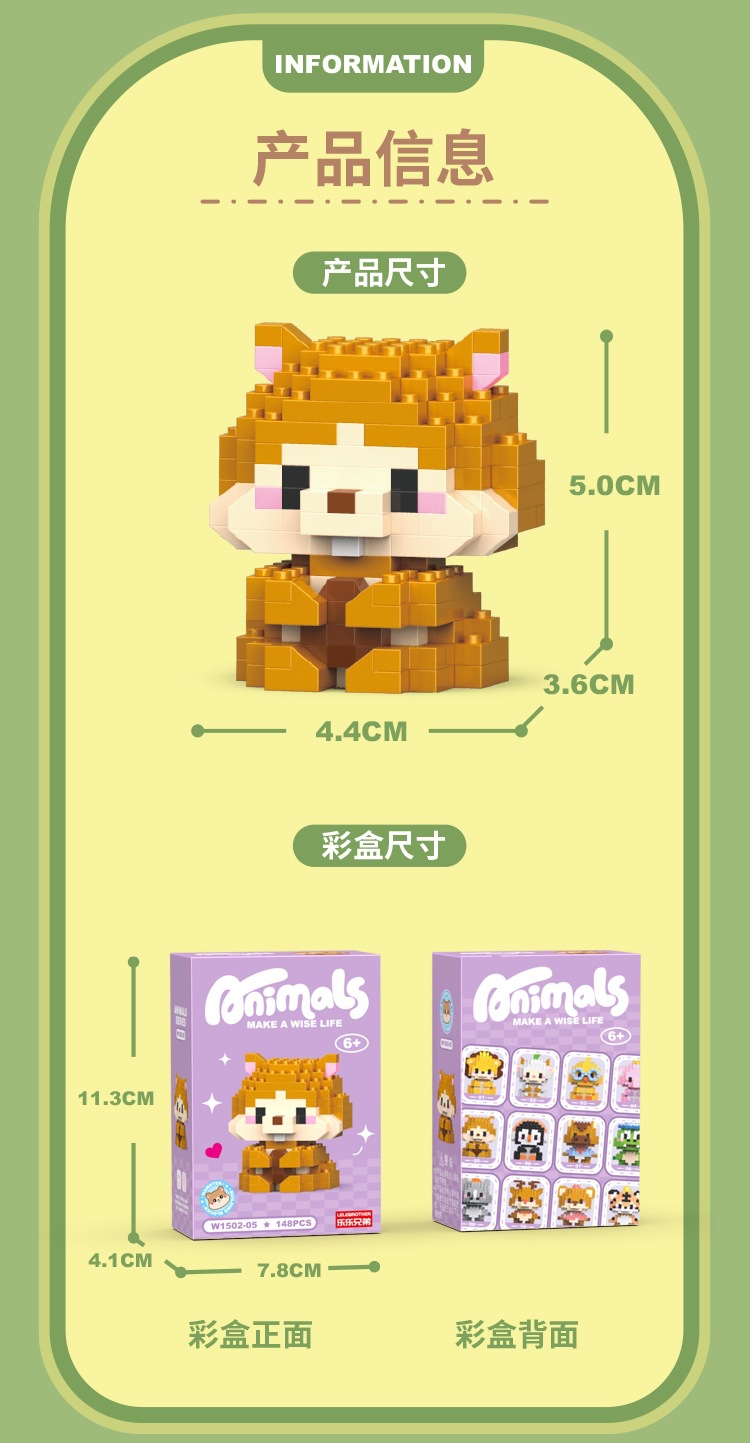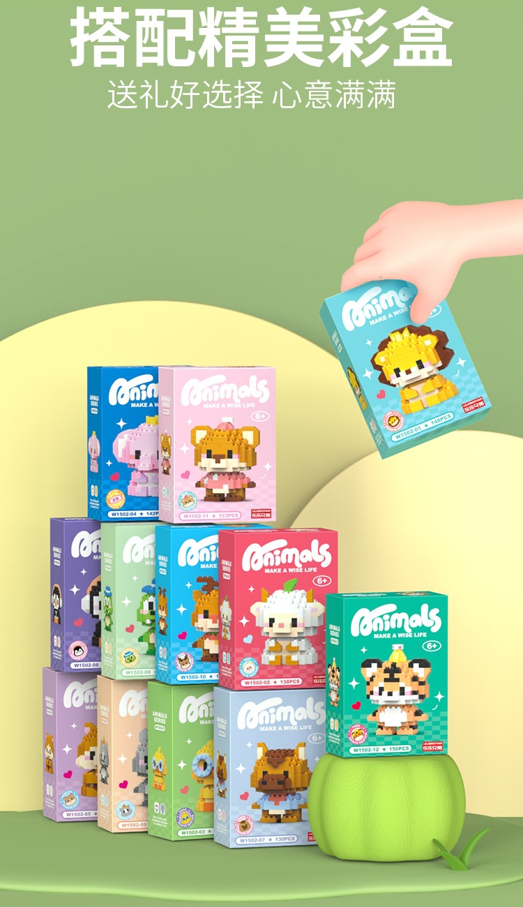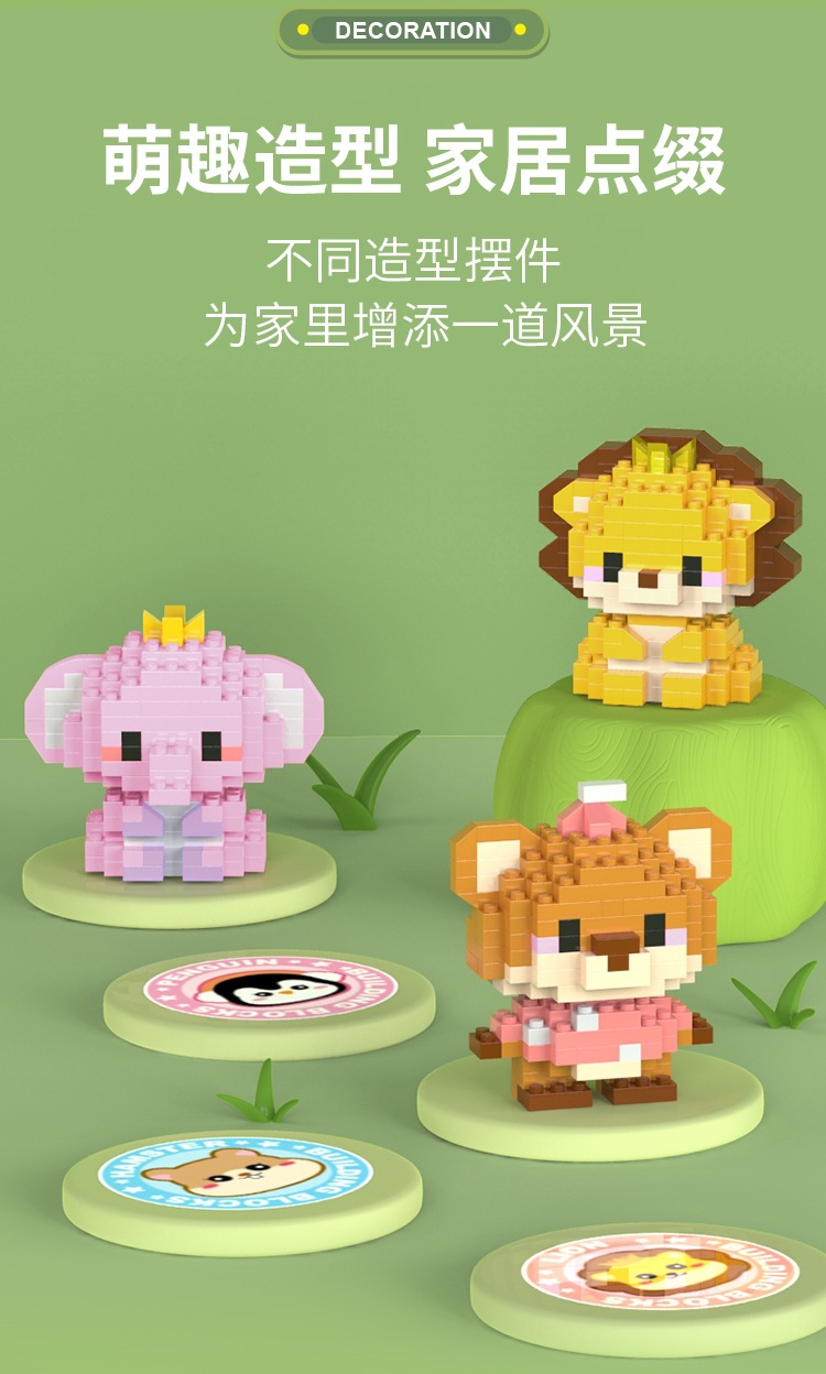 Lele 형제 귀여운 재미 작은 동물 사자 펭귄 호랑이 조립 모델 어린이 미세 입자 조립 건물 블록 장난감
