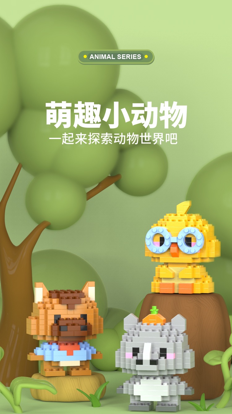 Lele 형제 귀여운 재미 작은 동물 사자 펭귄 호랑이 조립 모델 어린이 미세 입자 조립 건물 블록 장난감스토어 가기