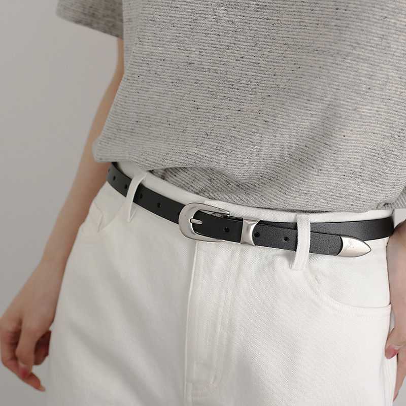 여성 봄과 여름 가죽 벨트 여성용 가죽 장식 틈새 솔리드 핀 버클 올 매치 청바지 벨트 여성용 블랙 패션 뉴스토어 가기