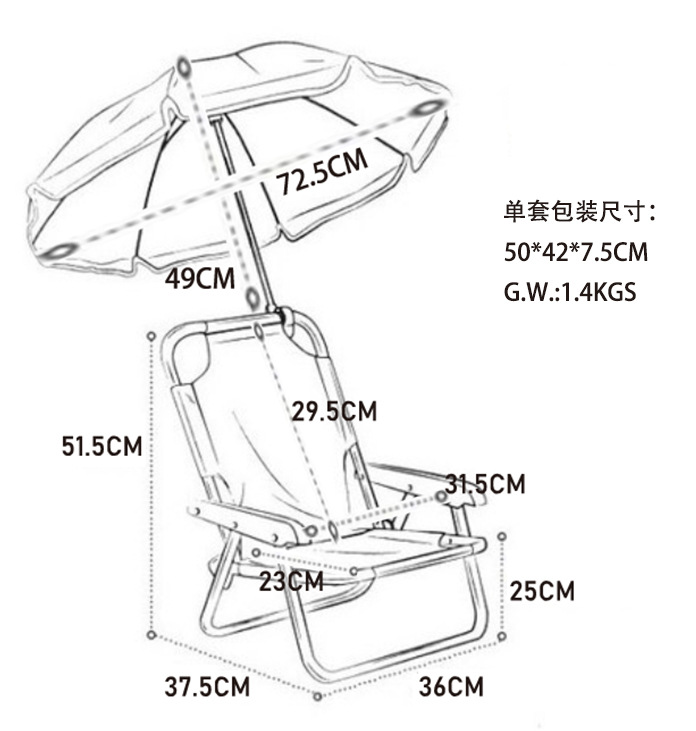 국경 간 인기 판매 모델 어린이 접이식 해변 의자 우산이있는 싱글 의자 두꺼운 피크닉 의자 휴대용