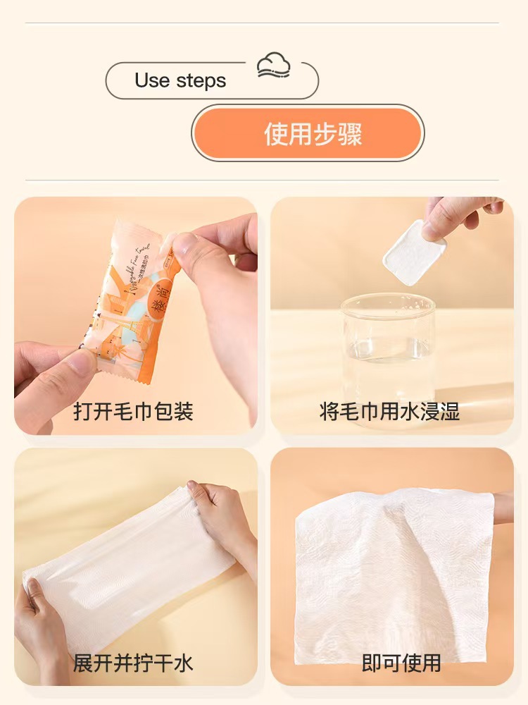 Loushang 물 골판지 압축 타월 두꺼운 압축 일회용 페이스 워시 타월 모든 면화 시대 부드러운 피부 친화적 인 여행 세트