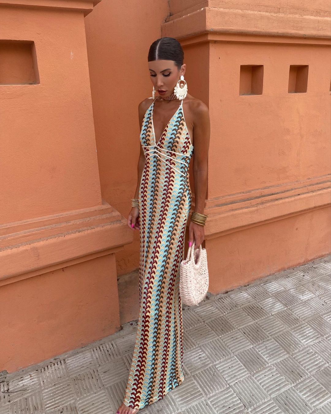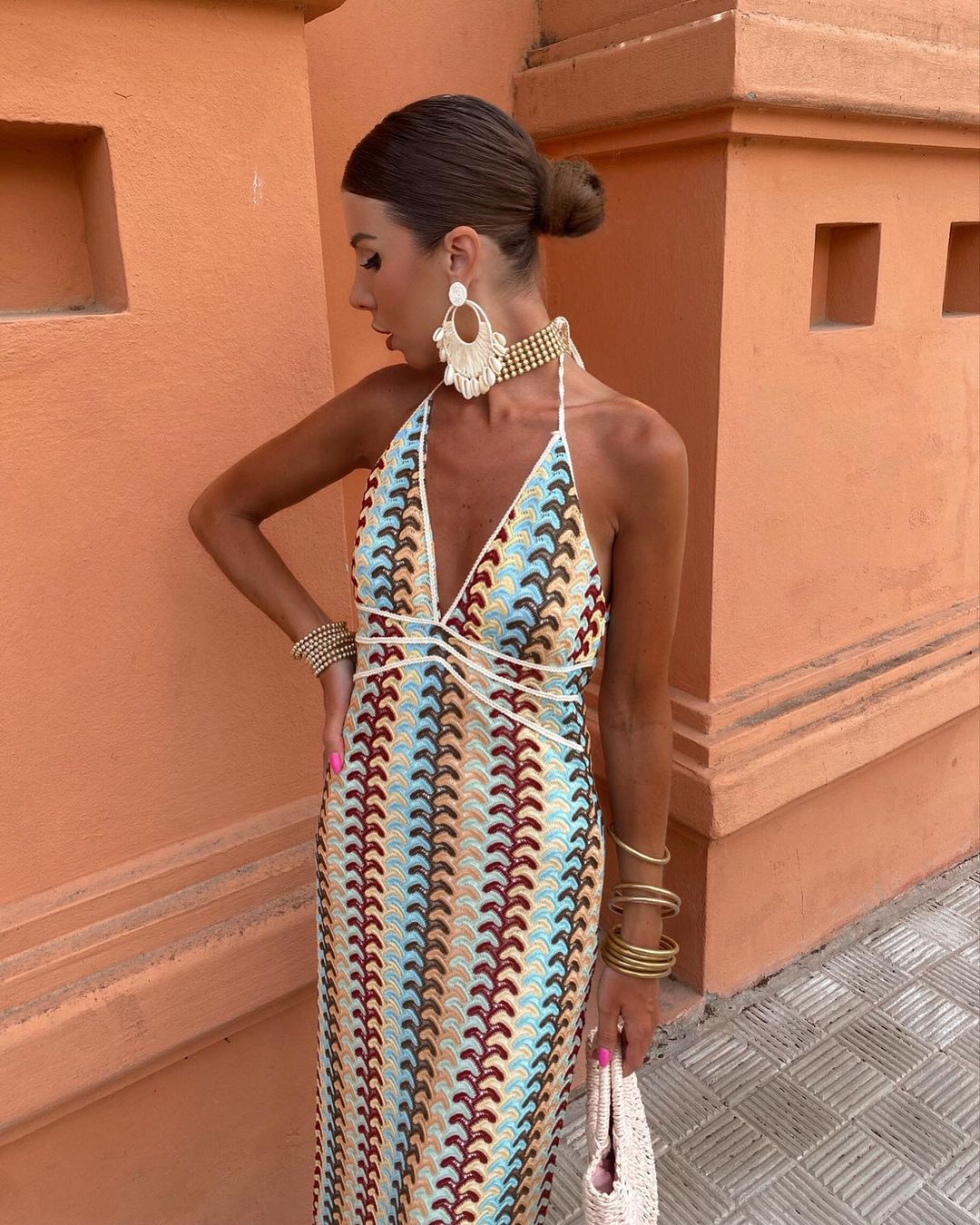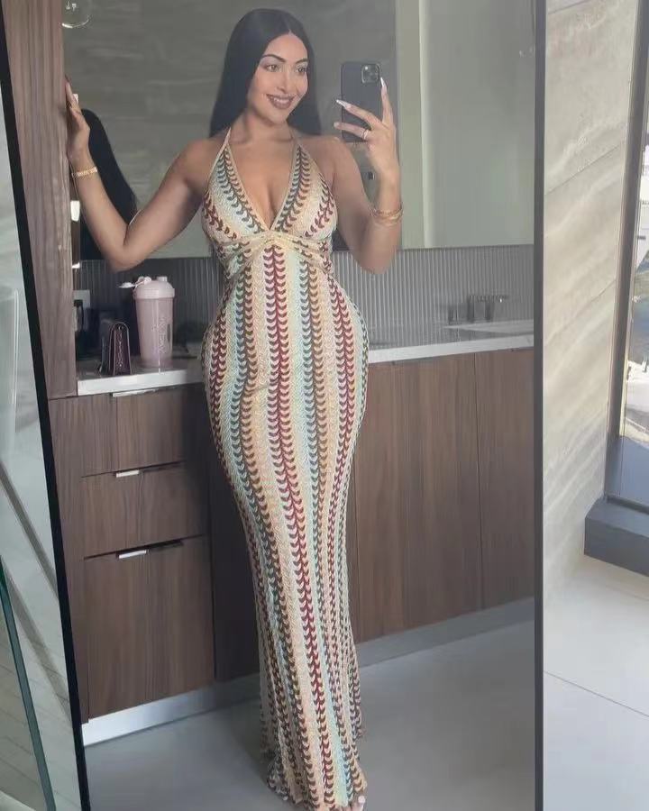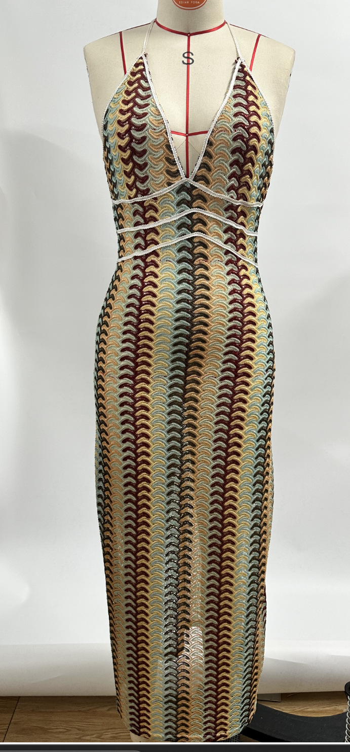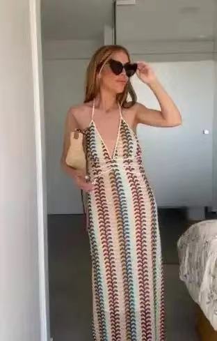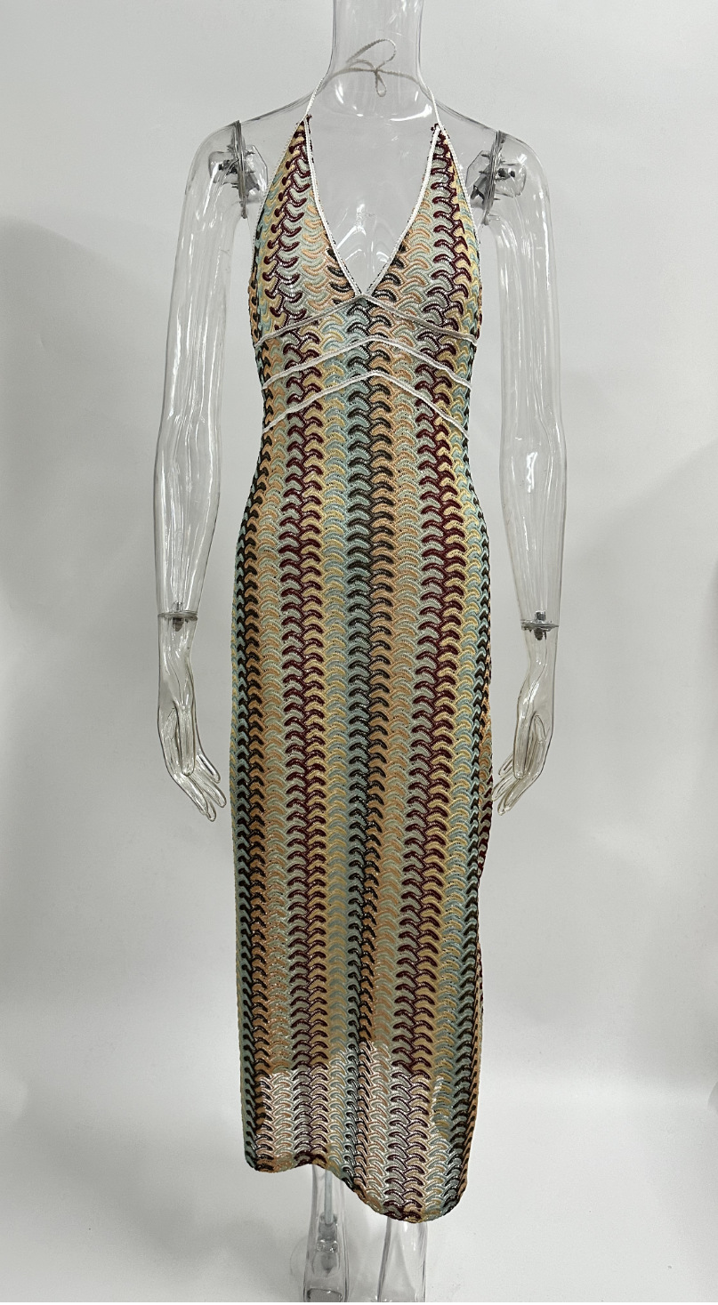 2024 국경 간 아마존 AliExpress 폭발 색상 대비 레이스 V 넥 스트랩 백리스 비치 원피스 HY124