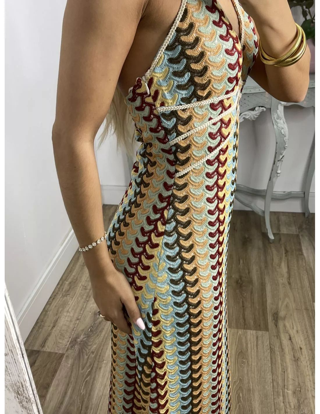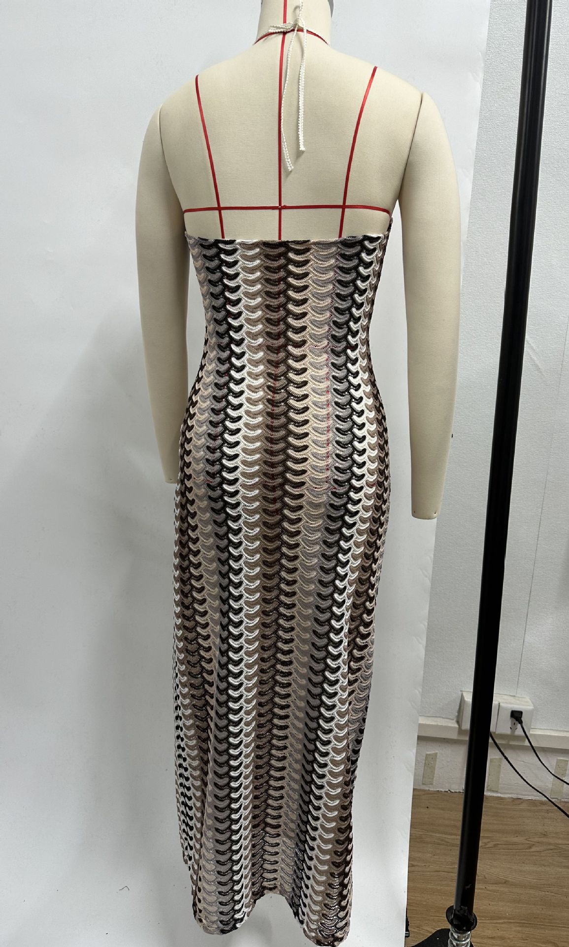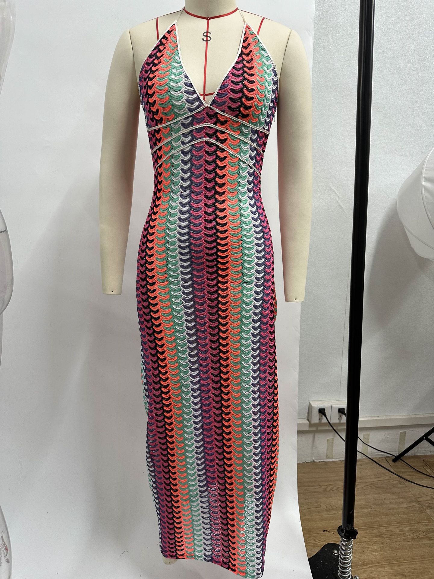2024 국경 간 아마존 AliExpress 폭발 색상 대비 레이스 V 넥 스트랩 백리스 비치 원피스 HY124스토어 가기