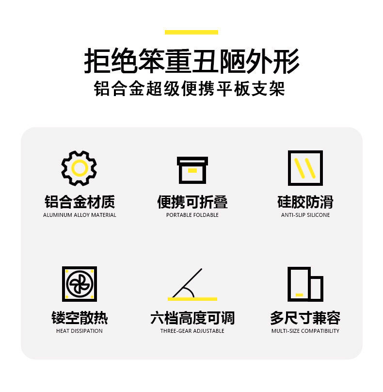 초경량, 소형 및 휴대용 접이식 알루미늄 합금 브래킷, 방열 및 각도 조절 가능, 노트북, 태블릿 및 iPad 페인팅에 적합