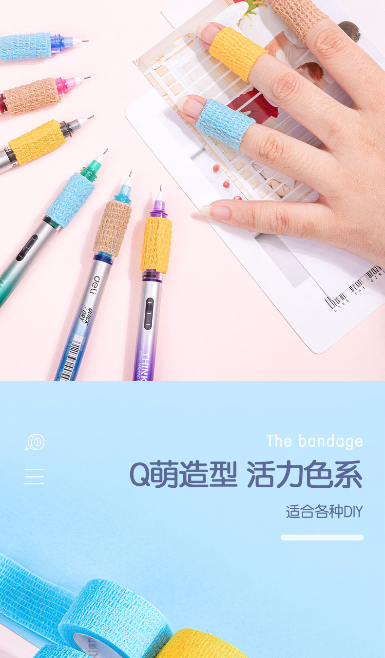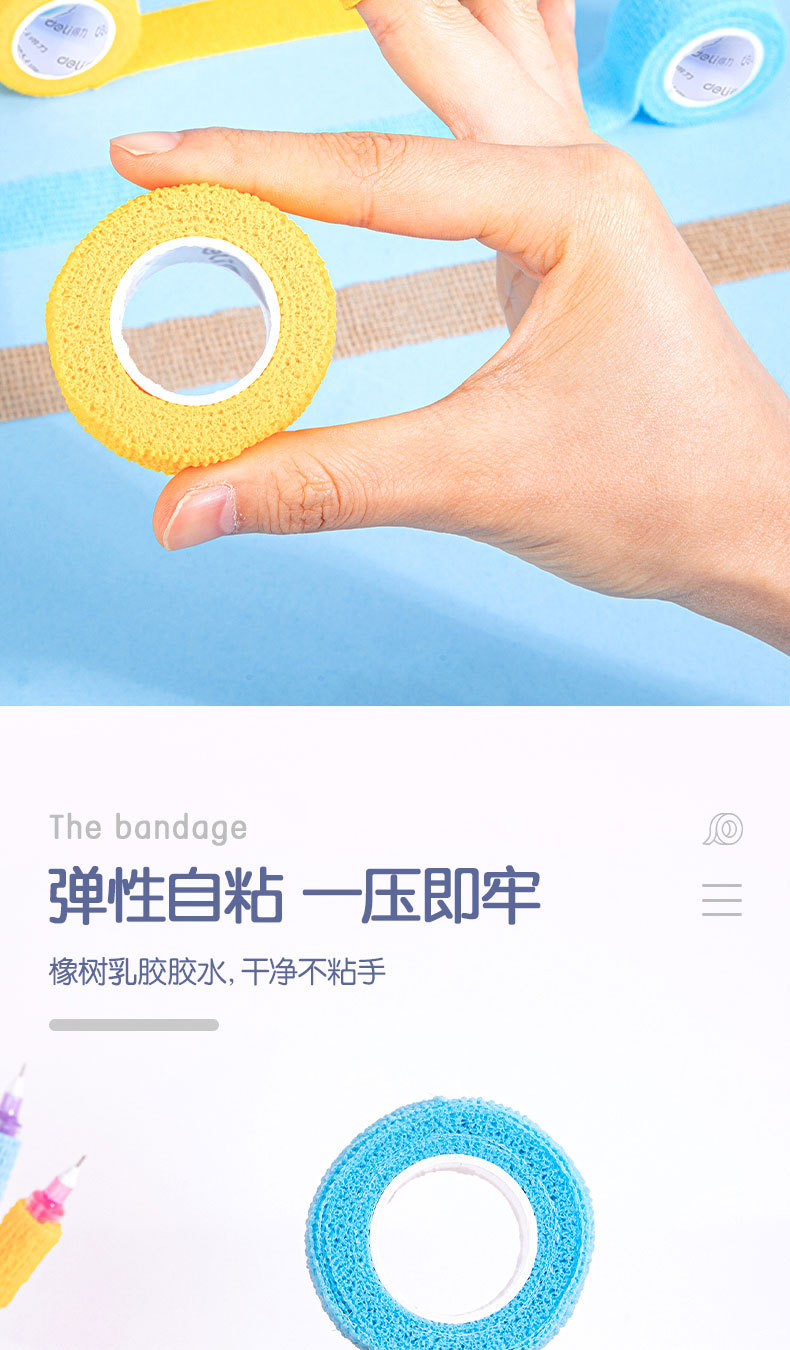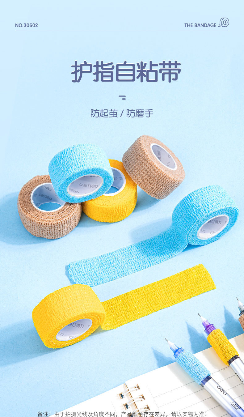 델리 30602 학생 손가락 보호 붕대 무취 방지 누에 고치 자체 접착 탄성 붕대 손가락 보호 3 롤 혼합 색상